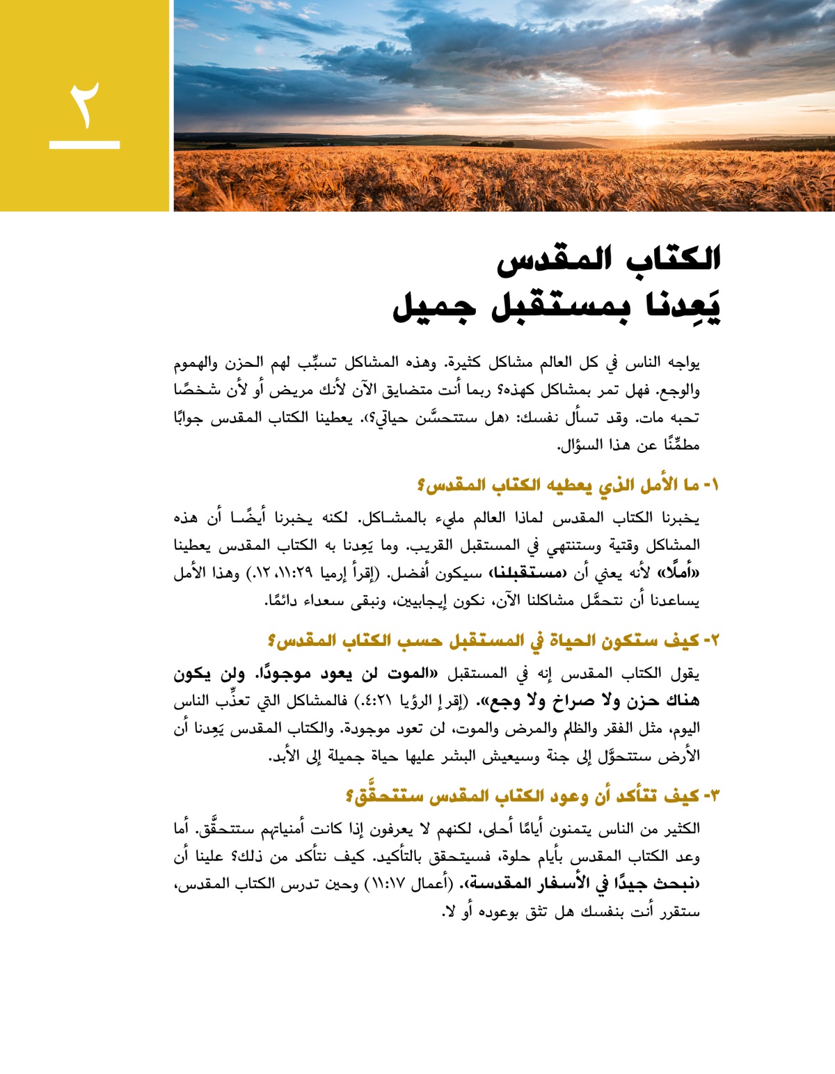 ١- ما الأمل الذي يعطيه الكتاب المقدس؟
