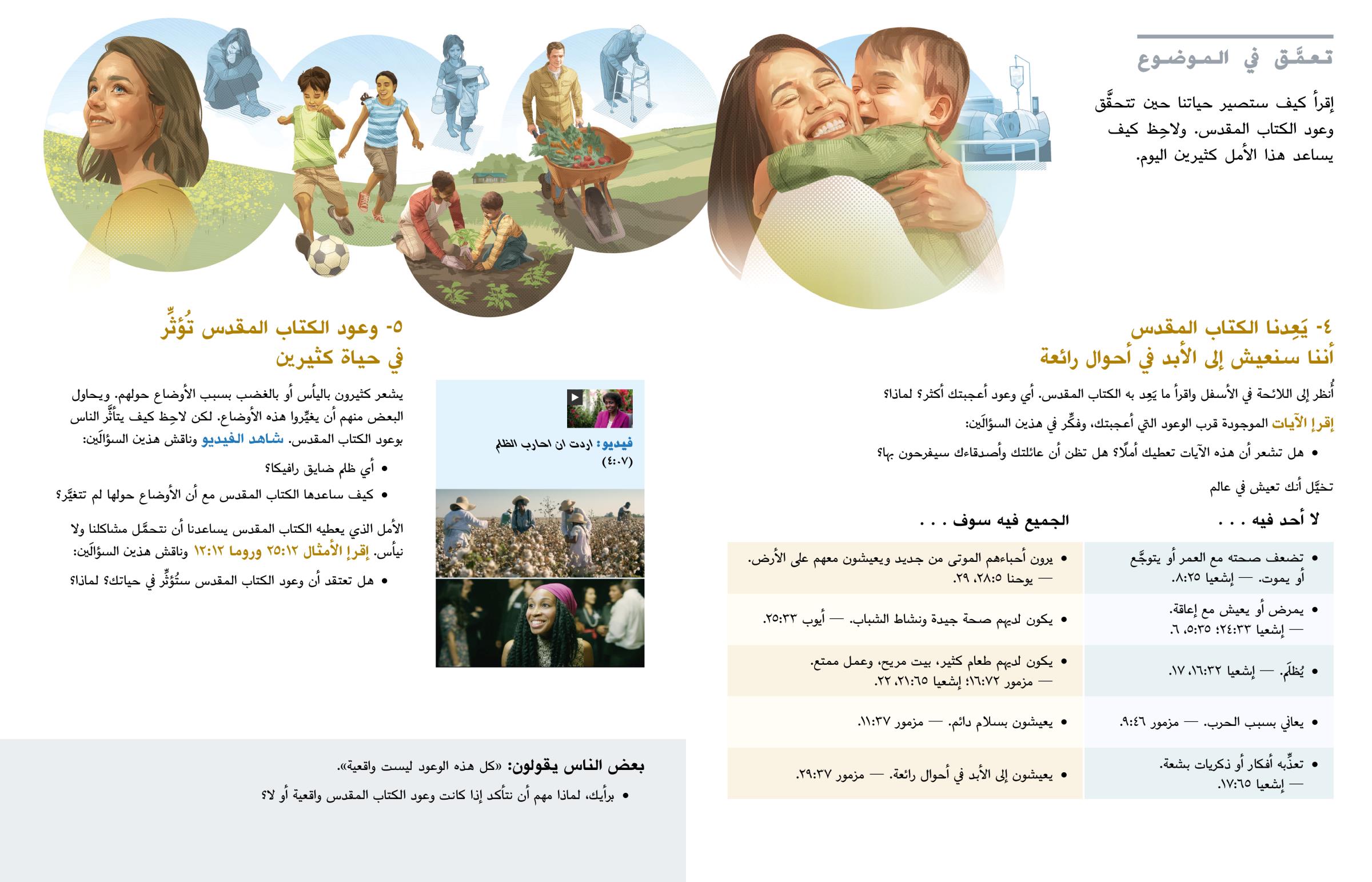 إقرأ كيف ستصير حياتنا حين تتحقَّق وعود الكتاب المقدس. ولاحِظ كيف يساعد هذا الأمل كثيرين اليوم.