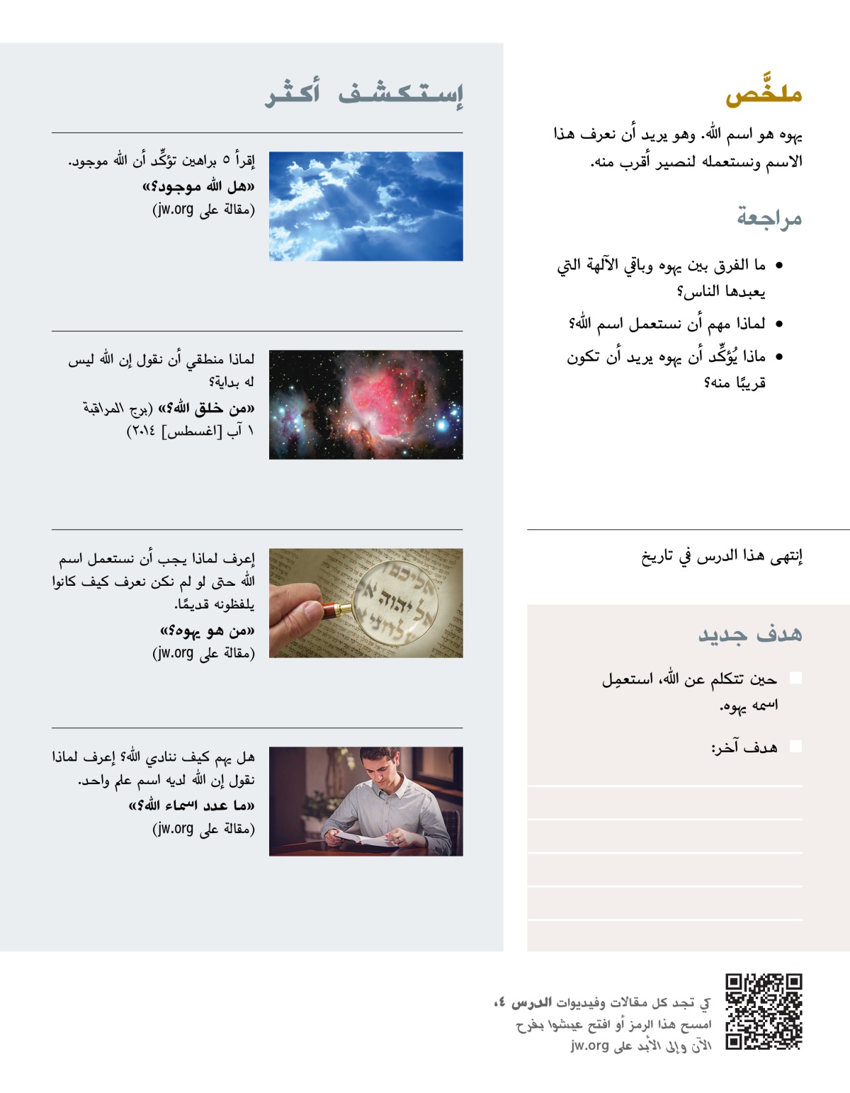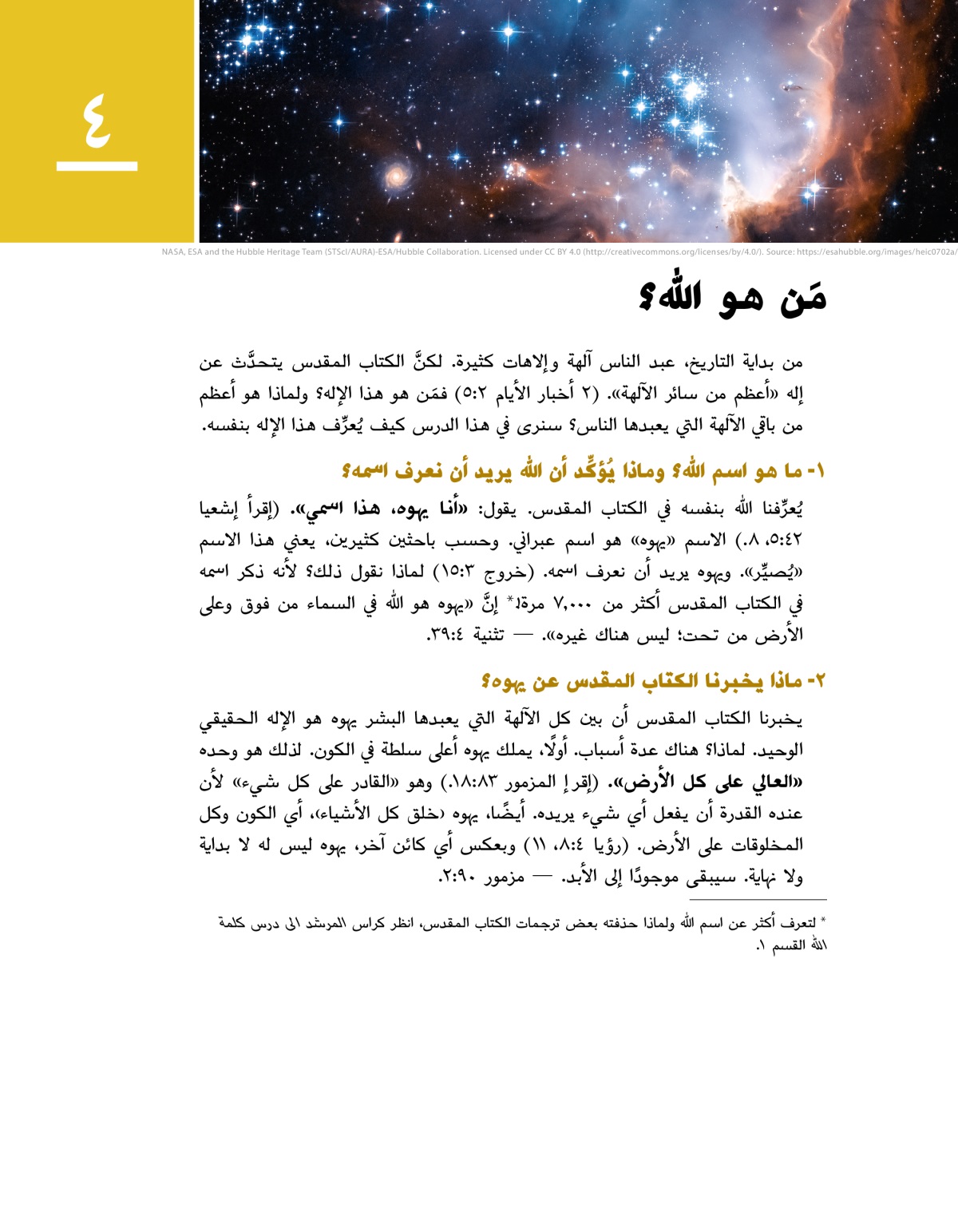 a لتعرف أكثر عن اسم اللّٰه ولماذا حذفته بعض ترجمات الكتاب المقدس، انظر كراس المرشد الى درس كلمة اللّٰه القسم ١.