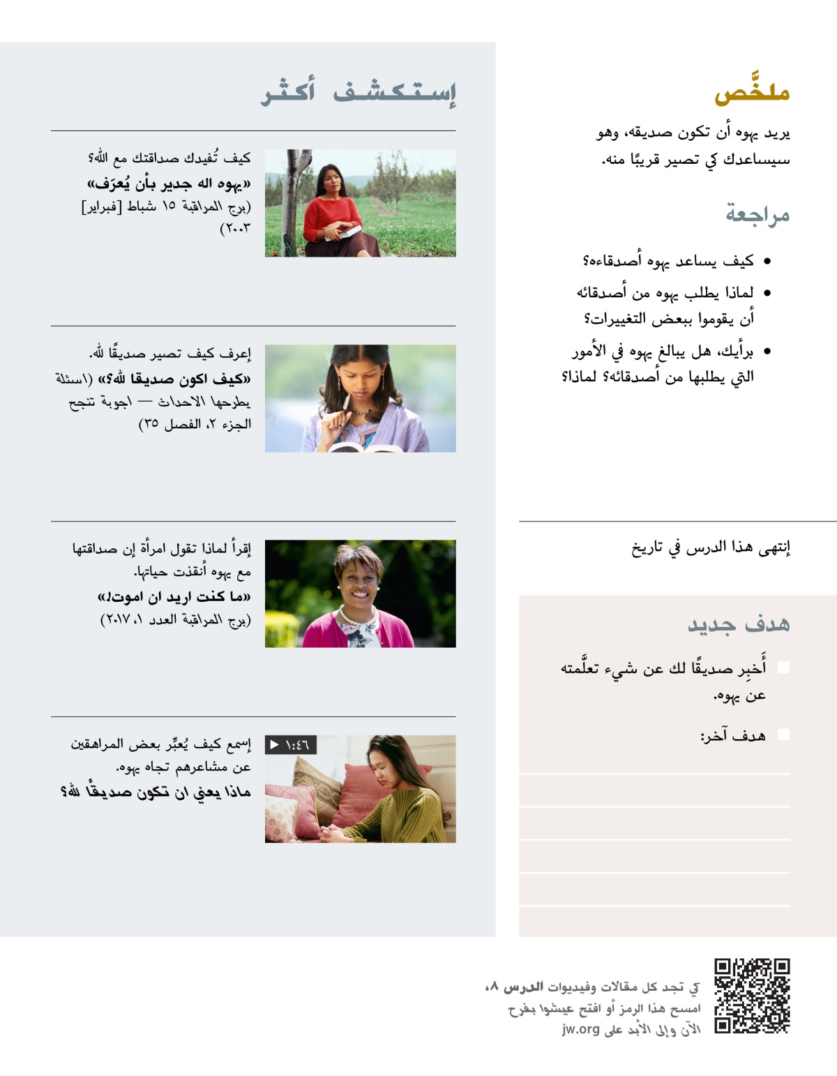 يريد يهوه أن تتعرَّف أكثر على صفاته ووعوده وطريقة تعامله مع الناس. لماذا؟ لأنه يحب أن تصير صديقه. وهو يعرف أنك لا تقدر أن تقترب إليه إذا لم تتعلَّم عنه. ولكن هل فعلًا تقدر أن تكون صديقًا للّٰه؟ (إقرإ المزمور ٢٥:١٤.) ماذا تفعل لتكون قريبًا منه؟ الكتاب المقدس يعطينا الجواب، ويخبرنا أيضًا لماذا الصداقة مع يهوه هي أهم صداقة في الحياة.