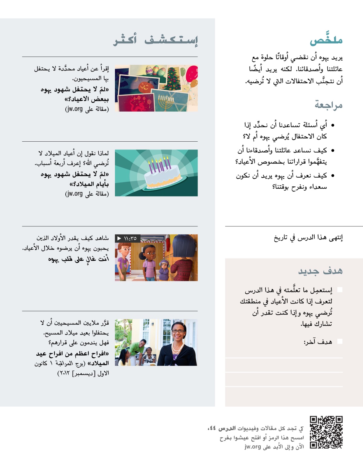 «لمَ لا يحتفل شهود يهوه بأيام الميلاد؟» (مقالة على jw.org)