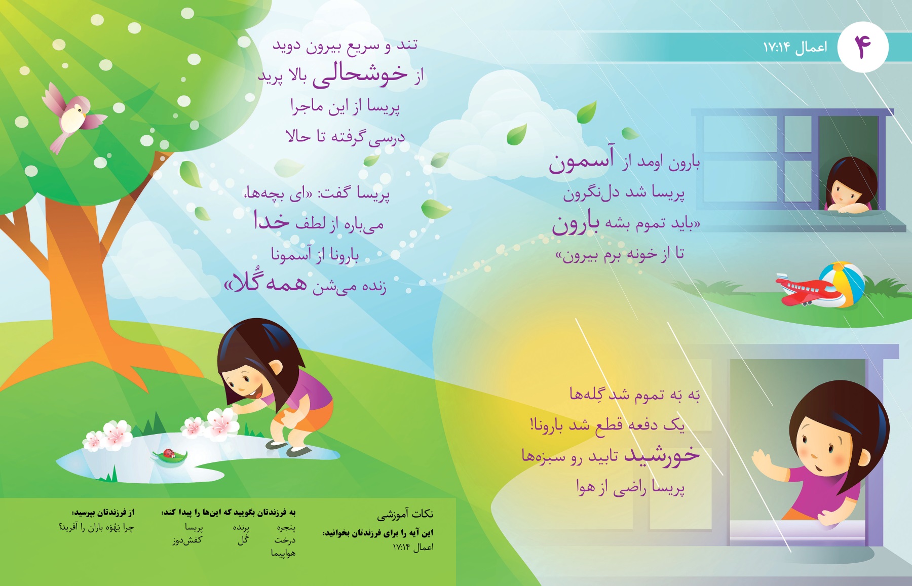 پریسا گفت: «ای بچهها، میباره از لطف خدا بارونا از آسمونا زنده میشن همه گُلا»