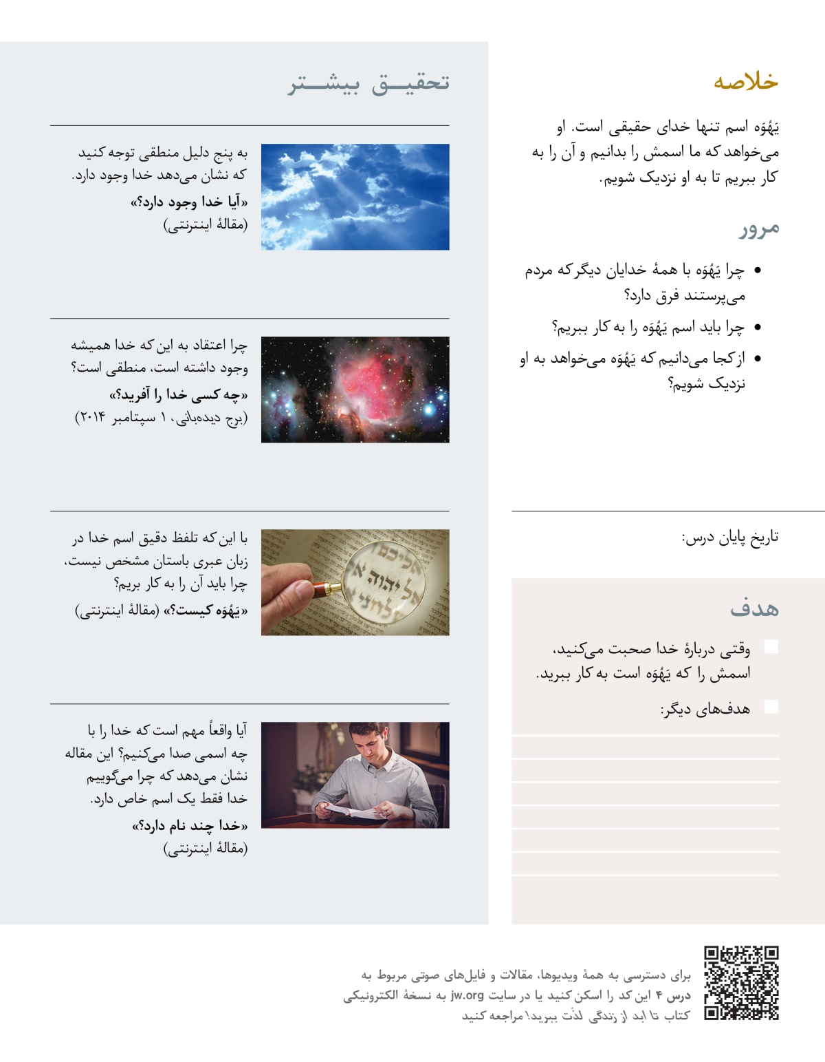 ۱. اسم خدا چیست و چرا میتوانیم مطمئن باشیم که او میخواهد ما اسمش را بدانیم؟