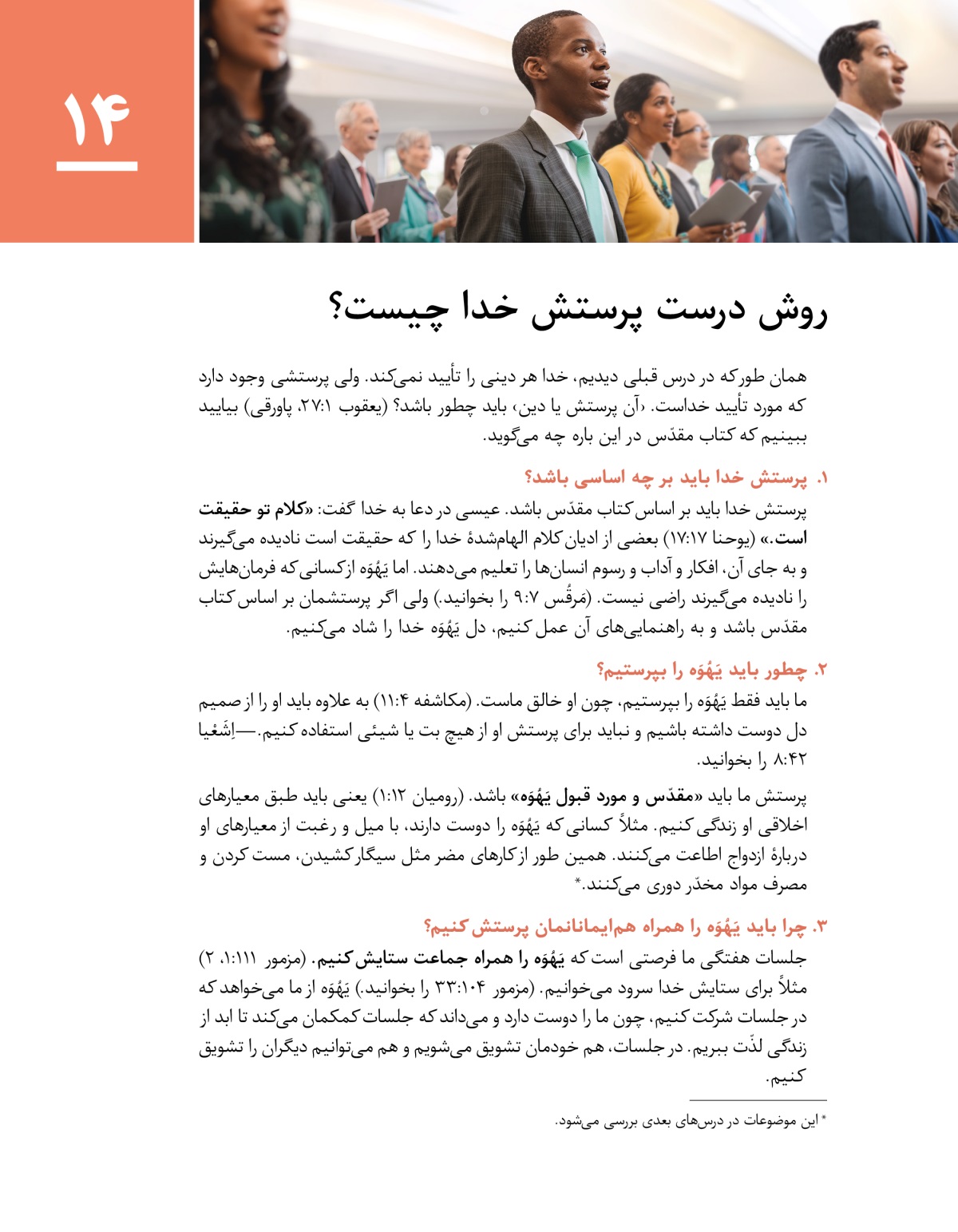 همان طور که در درس قبلی دیدیم، خدا هر دینی را تأیید نمیکند. ولی پرستشی وجود دارد که مورد تأیید خداست. ‹آن پرستش یا دین› باید چطور باشد؟ (یعقوب ۱:۲۷، پاورقی) بیایید ببینیم که کتاب مقدّس در این باره چه میگوید.