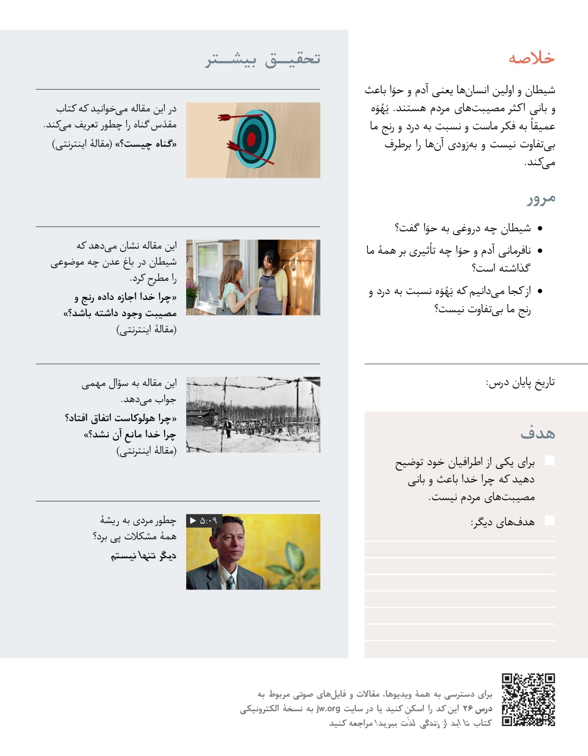 در این درس میبینیم که خدا باعث و بانی اتفاقات بد و مصیبتهای مردم نیست و متوجه میشویم که او با دیدن درد و رنج ما چه احساسی دارد.