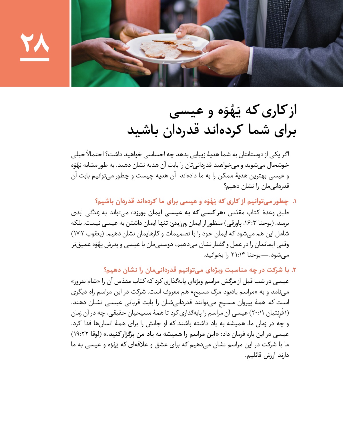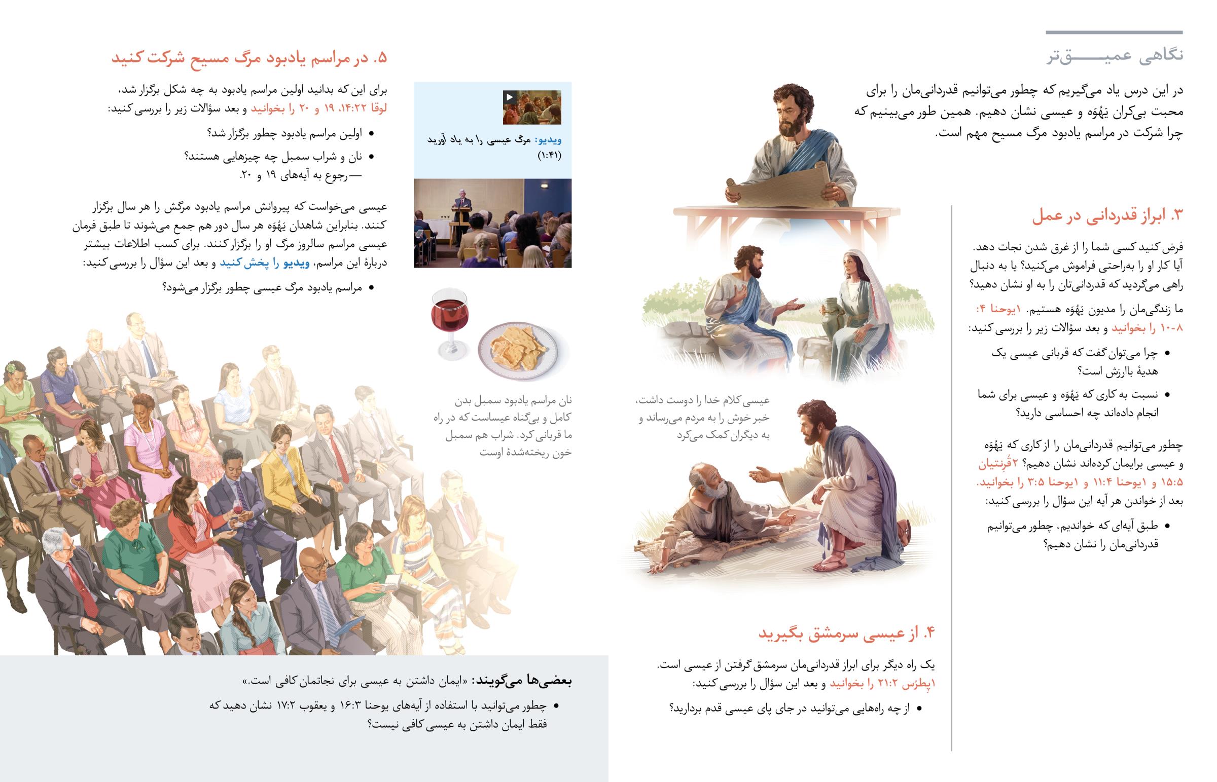 در این درس یاد میگیریم که چطور میتوانیم قدردانیمان را برای محبت بیکران یَهُوَه و عیسی نشان دهیم. همین طور میبینیم که چرا شرکت در مراسم یادبود مرگ مسیح مهم است.