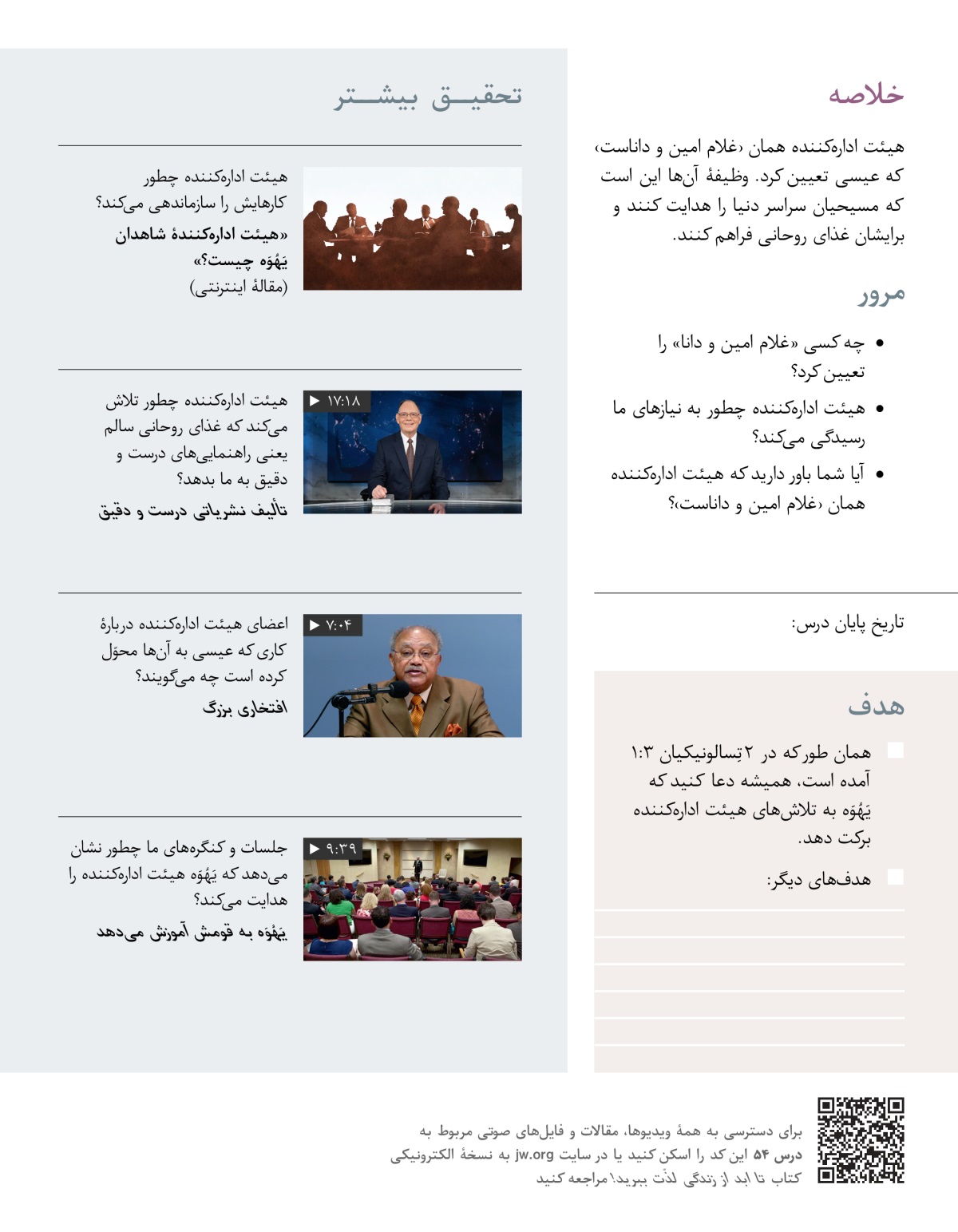 در این درس یاد می‌گیریم که چرا به «غلام امین و دانا» یعنی هیئت اداره‌کننده نیاز داریم.‏