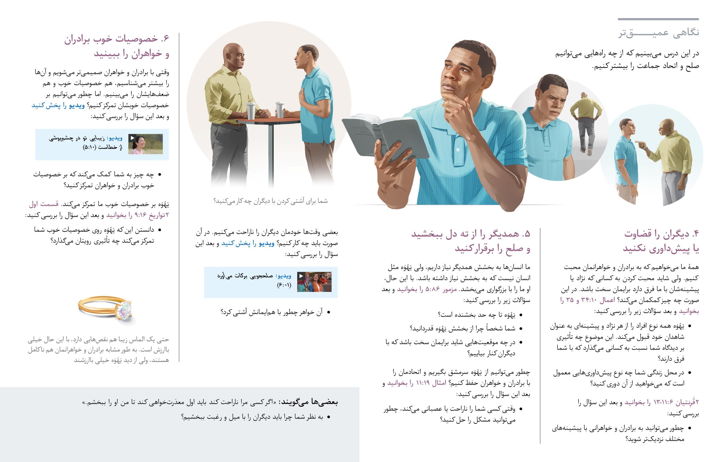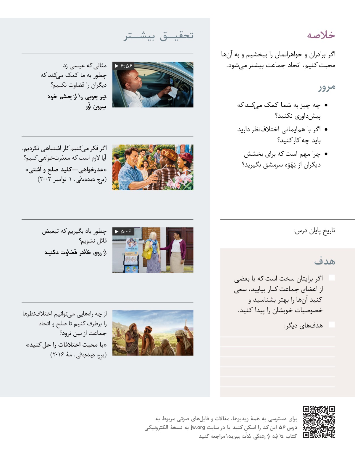 در این درس میبینیم که از چه راههایی میتوانیم صلح و اتحاد جماعت را بیشتر کنیم.