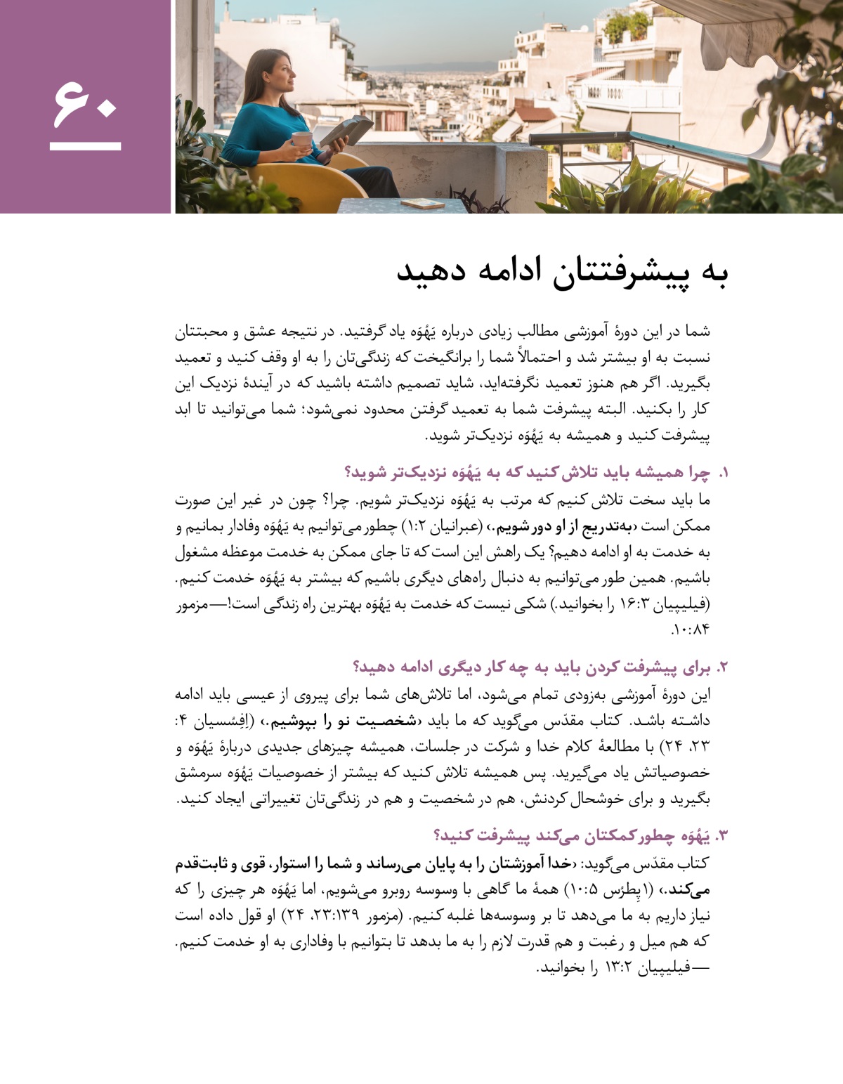 در این درس میبینید که چطور میتوانید به پیشرفتتان ادامه دهید و یَهُوَه چه برکتهایی به شما میدهد.