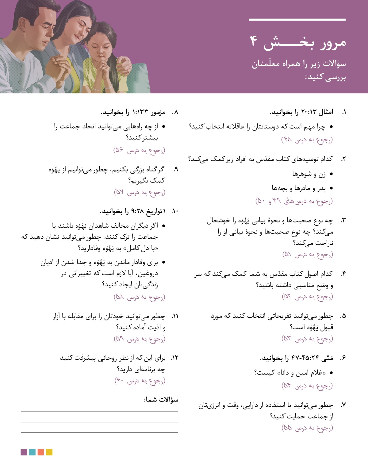 سؤالات زیر را همراه معلّمتان بررسی کنید: