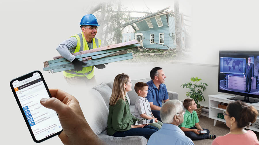 b شرح تصاویر: یک سرپرست خانواده با وجود مشغلهٔ زیاد، در کار امدادرسانی کمک میکند، برای حمایت از فعالیت جهانی اعانه میدهد و دیگران را به پرستش خانوادگیشان دعوت میکند.