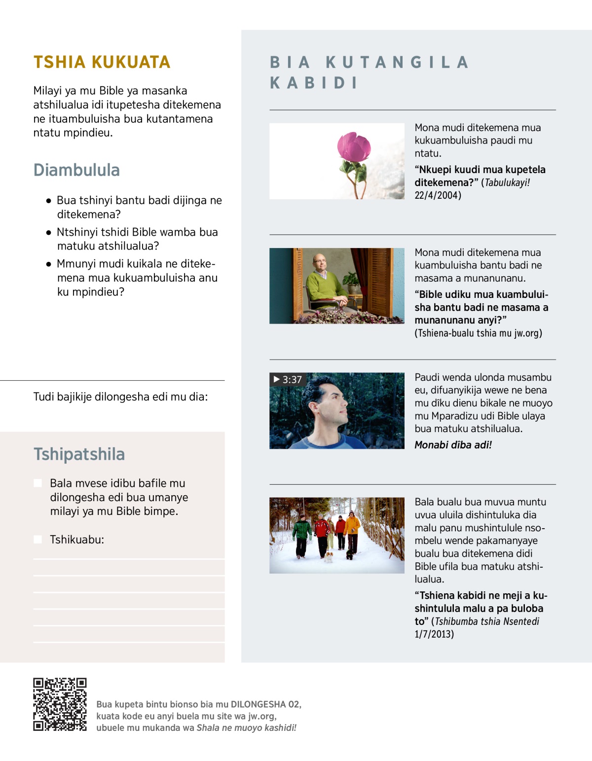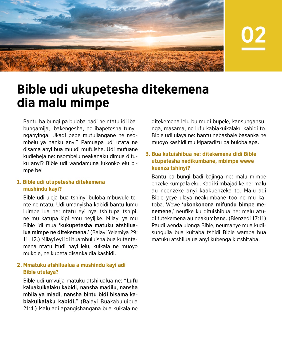 3. Bua kutuishibua ne: ditekemena didi Bible utupetesha nedikumbane, mbimpe wewe kuenza tshinyi?
