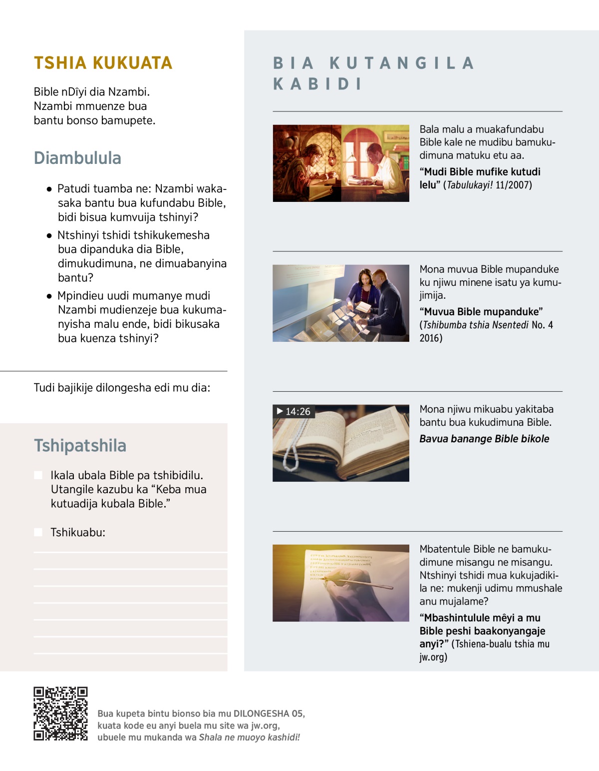Mbatentule Bible ne bamukudimune misangu ne misangu. Ntshinyi tshidi mua kukujadikila ne: mukenji udimu mmushale anu mujalame?