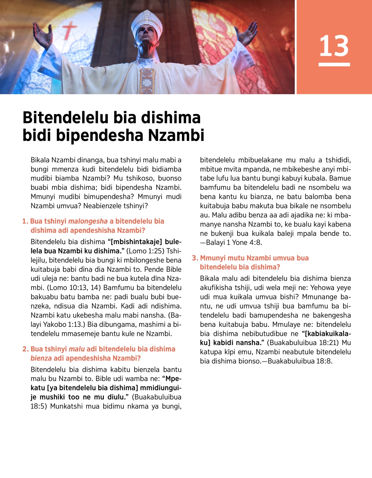 1. Bua tshinyi malongesha a bitendelelu bia dishima adi apendeshisha Nzambi?