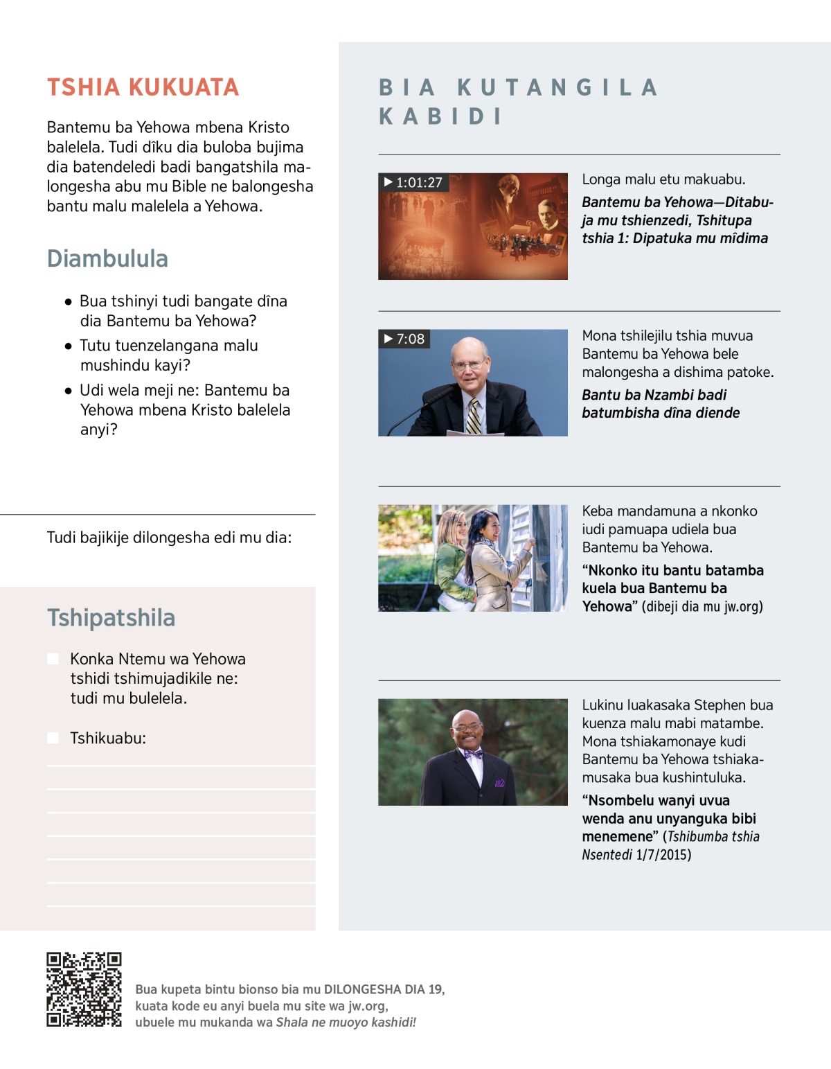 Bua tshinyi tudi bangate dîna dia Bantemu ba Yehowa? Tangilayi FILME, pashishe nuandamune lukonko ludi lulonda.