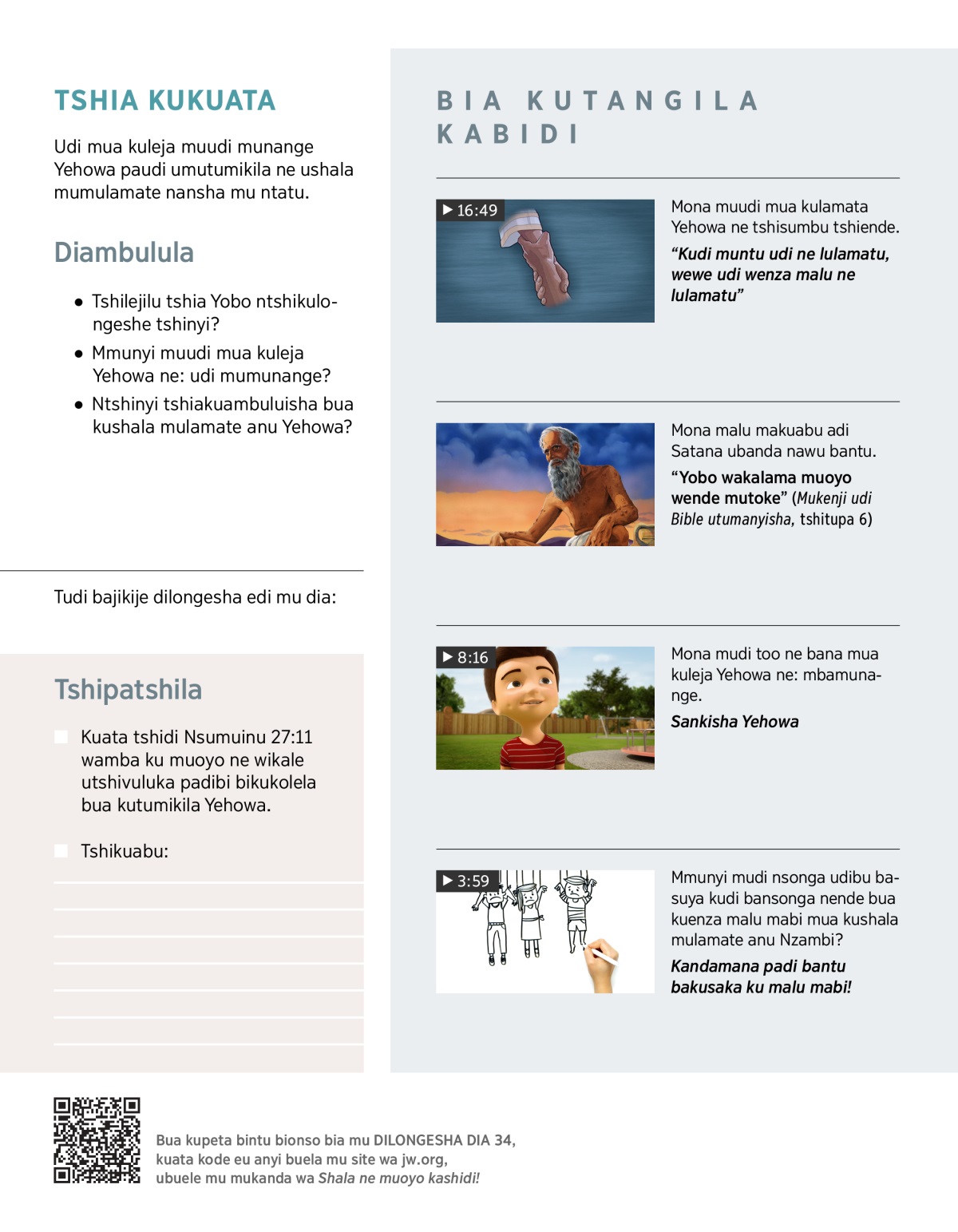 Udi mua kuleja muudi munange Yehowa paudi umutumikila ne ushala mumulamate nansha mu ntatu.