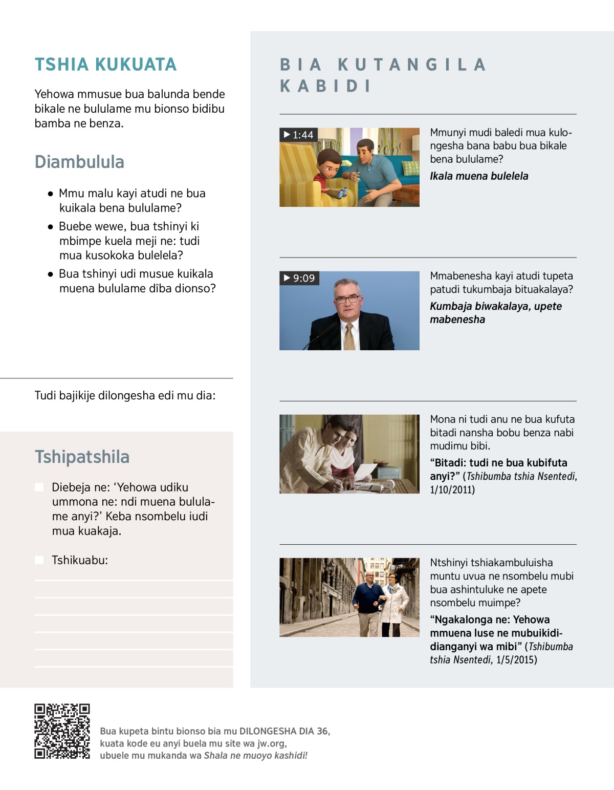 “Ngakalonga ne: Yehowa mmuena luse ne mubuikididianganyi wa mibi” (Tshibumba tshia Nsentedi, 1/5/2015)