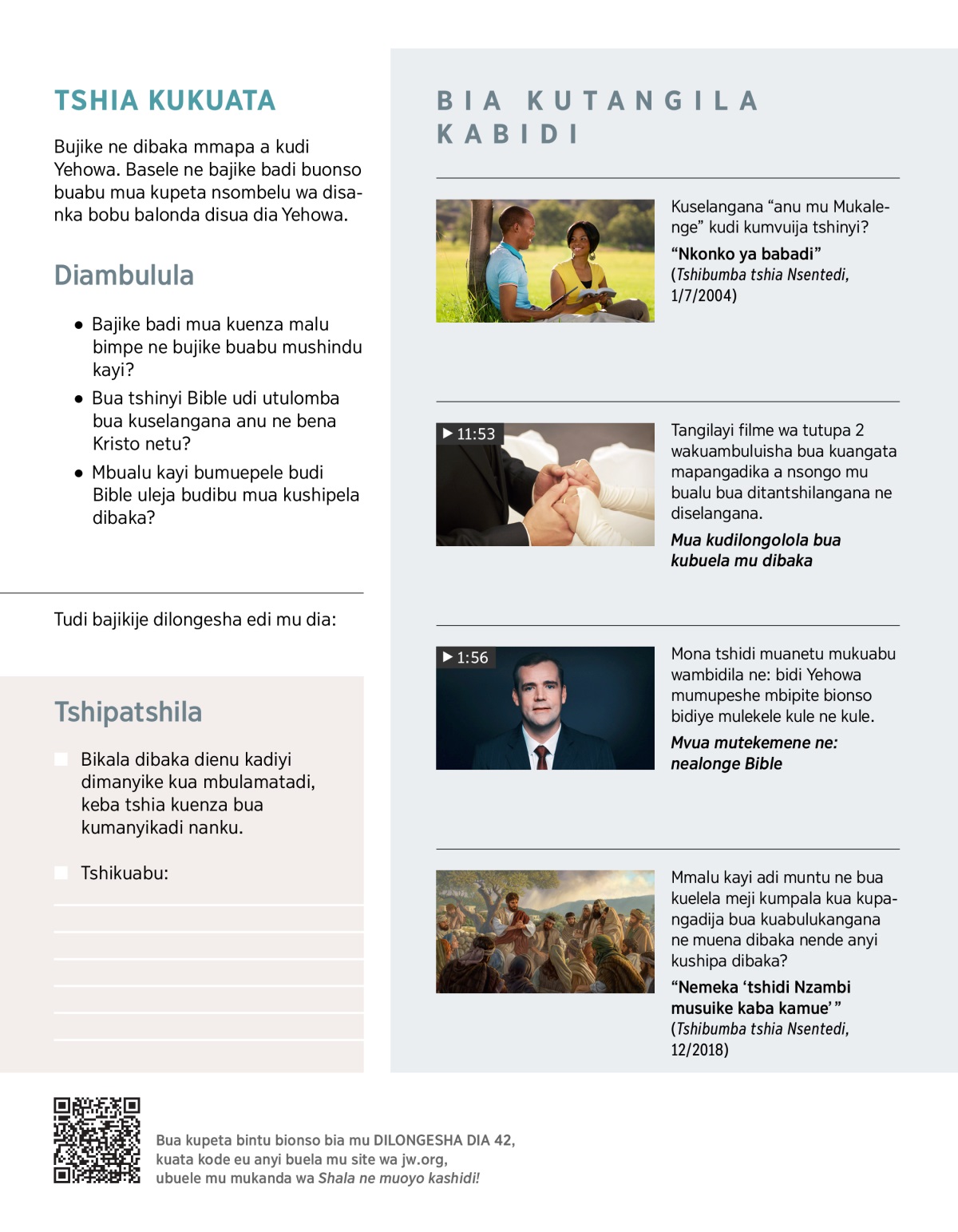Bidi mua kulomba muntu bua kudienzeja bikole bua kutumikila mikenji idi Yehowa muele bua dibaka.c Kadi Yehowa udi ubenesha badi bayitumikila. Tangilayi FILME.