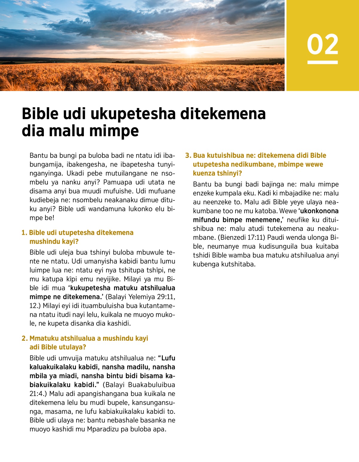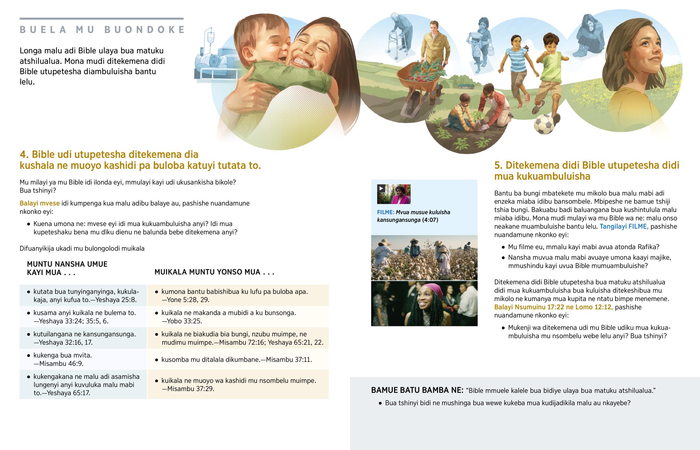 4. Bible udi utupetesha ditekemena dia kushala ne muoyo kashidi pa buloba katuyi tutata to.