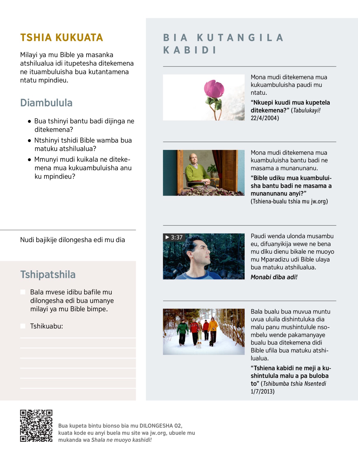 3. Bua kutuishibua ne: ditekemena didi Bible utupetesha nedikumbane, mbimpe wewe kuenza tshinyi?