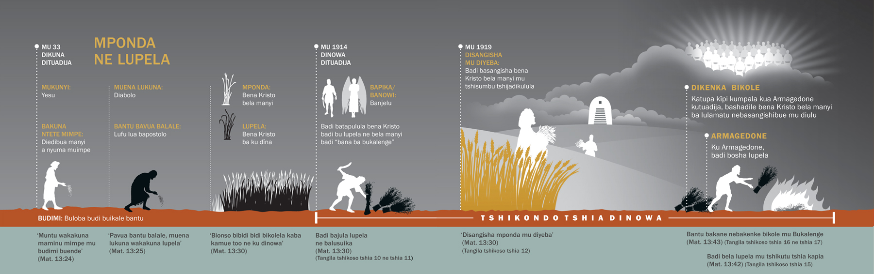 2 Malu adi enzeka mu budimi ebu adi aleja mushindu ne tshikondo tshivua Yezu mua kupatula munkatshi mua bantu, bantu badi benza kasumbu ka mponda, tuambe ne: bena Kristo bela manyi bakokesha nende mu Bukalenge buende. Mudimu wa dikuna wakatuadija mu Pentekoste wa mu 33. Mudimu wa disangisha neujike pikala bela manyi badi ne muoyo ku ndekelu kua ndongoluelu wa malu eu ne bua kupeta tshitampi tshia ndekelu ne pashishe nebangatshibue mu diulu. (Mat. 24:31; Buak. 7:1-4) Anu bu mudi muntu udi muimane pa mukuna umona bimpe bionso bidi mu tshibanda, lusumuinu elu ludi palu lutuambuluisha bua kumona malu avua mua kuenzeka munkatshi mua bidimu bitue ku 2 000. Bilondeshile bitudi bamanye, mmalu kayi adi apetangana ne Bukalenge atudi tujingulula? Lusumuinu elu ludi luakula bua tshikondo tshia dikuna, tshia dikola ne tshia dinowa. Tshiena-bualu etshi netshimanyine nangananga pa tshikondo tshia dinowa.a