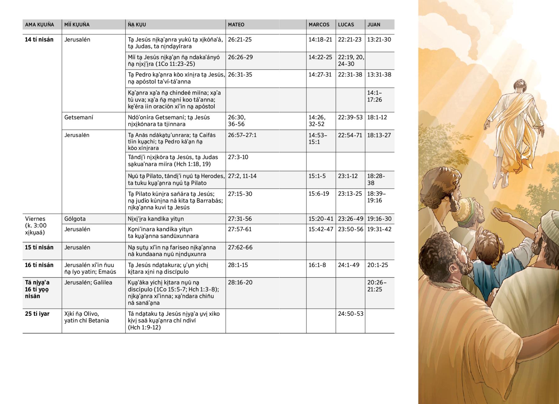 Ku̱a̱ʼáka yichi̱ ki̱tara nu̱ú na̱ discípulo (1Co 15:5-7; Hch 1:3-8); ni̱ka̱ʼa̱nra xíʼinna; xa̱ʼndara chiñu ná sanáʼa̱na |