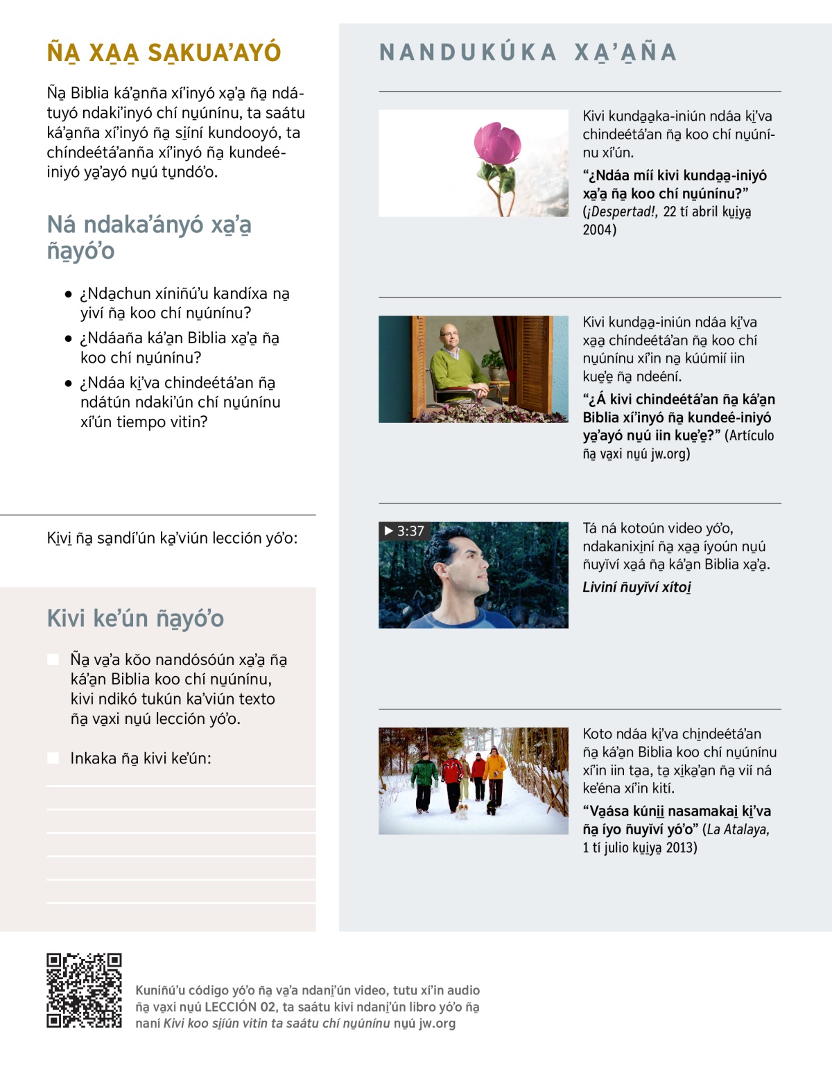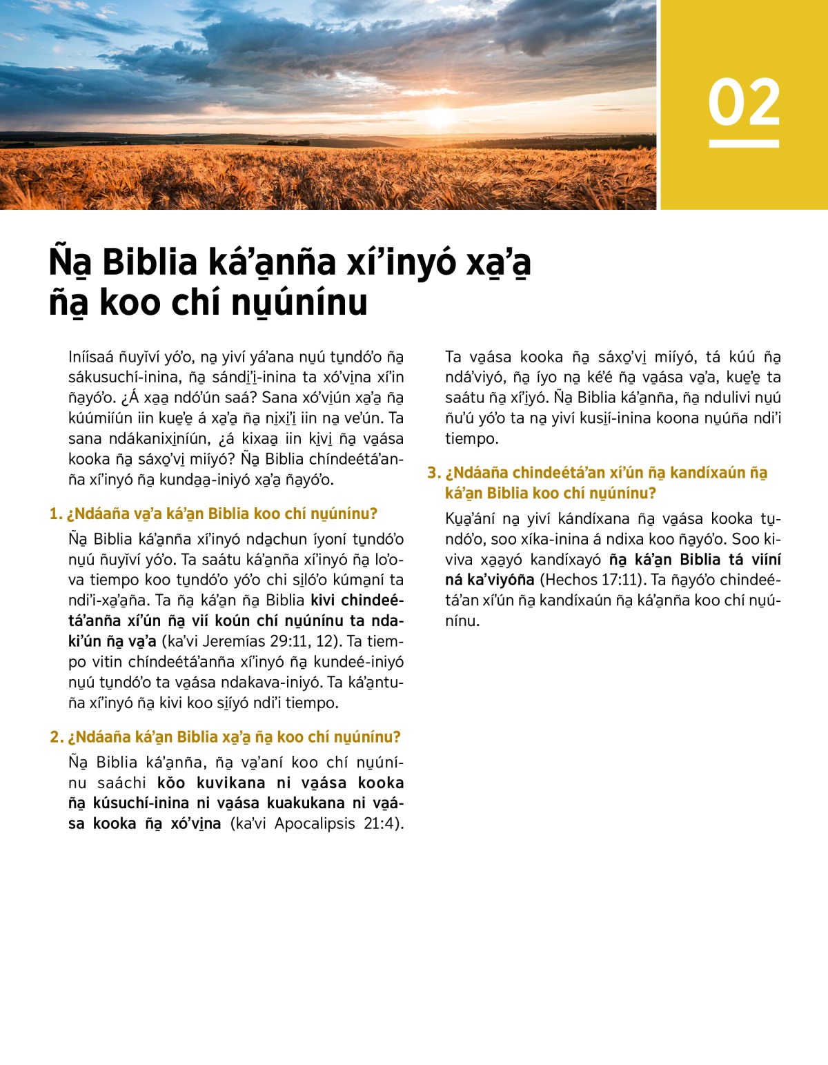 ÑA̱ KÁʼA̱N SAVA NA̱ YIVÍ: “Va̱ʼaníva ña̱ káʼa̱n ña̱ Biblia, soo ni va̱ása xi̱nuvíña”.