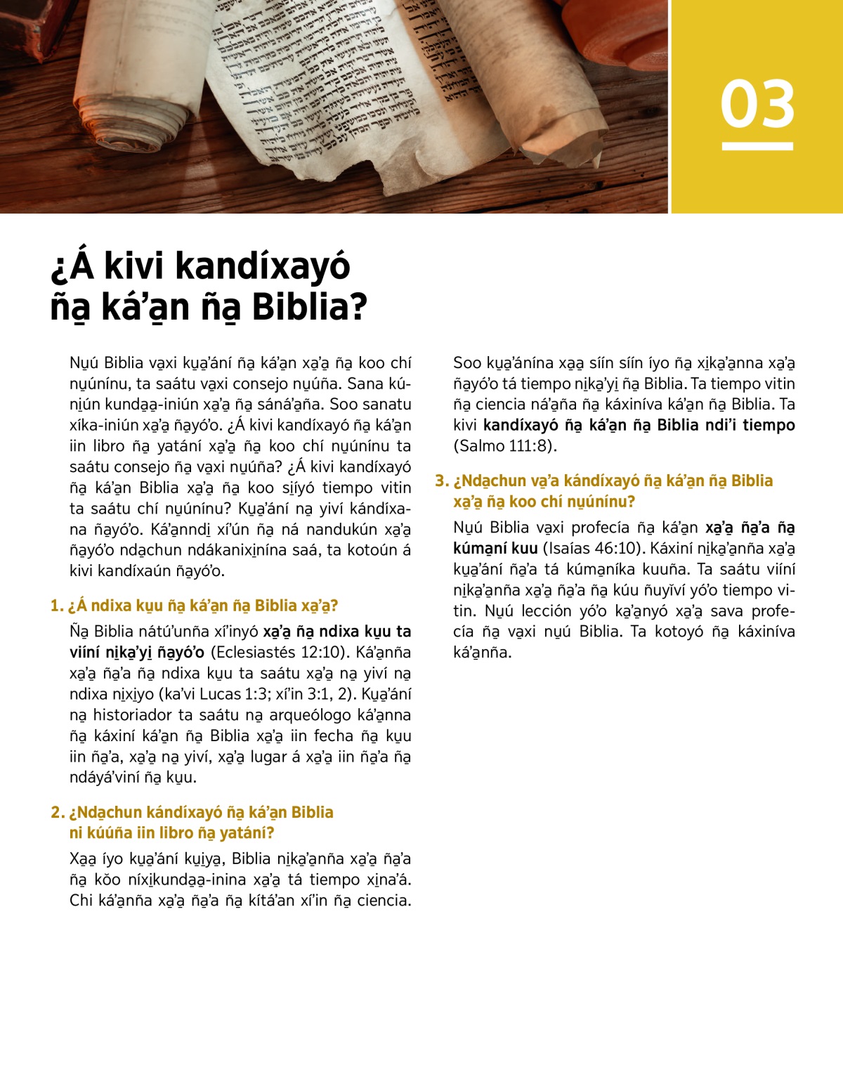 3. ¿Nda̱chun va̱ʼa kándíxayó ña̱ káʼa̱n ña̱ Biblia xa̱ʼa̱ ña̱ koo chí nu̱únínu?