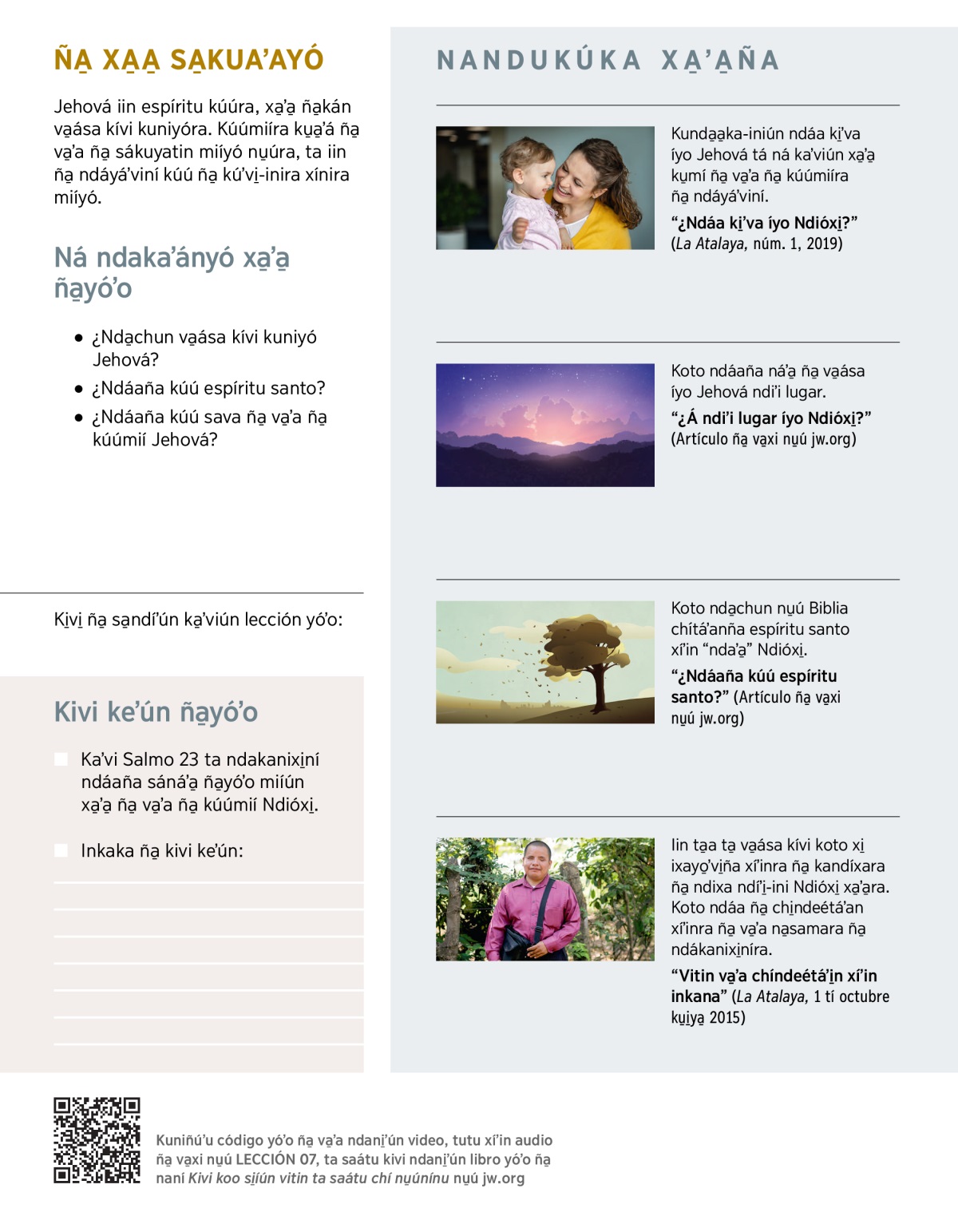“¿Ndáaña kúú espíritu santo?” (Artículo ña̱ va̱xi nu̱ú jw.org)