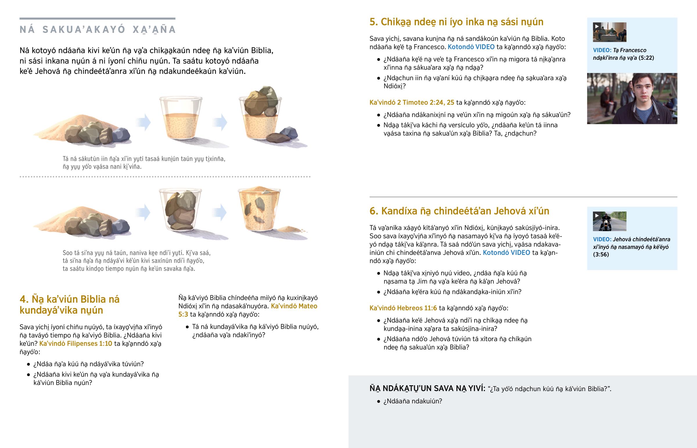 Sava yichi̱, savana kuni̱na ña̱ ná sandákoún kaʼviún ña̱ Biblia. Koto ndáaña ke̱ʼé ta̱ Francesco. Kotondó VIDEO ta ka̱ʼa̱nndó xa̱ʼa̱ ña̱yóʼo: