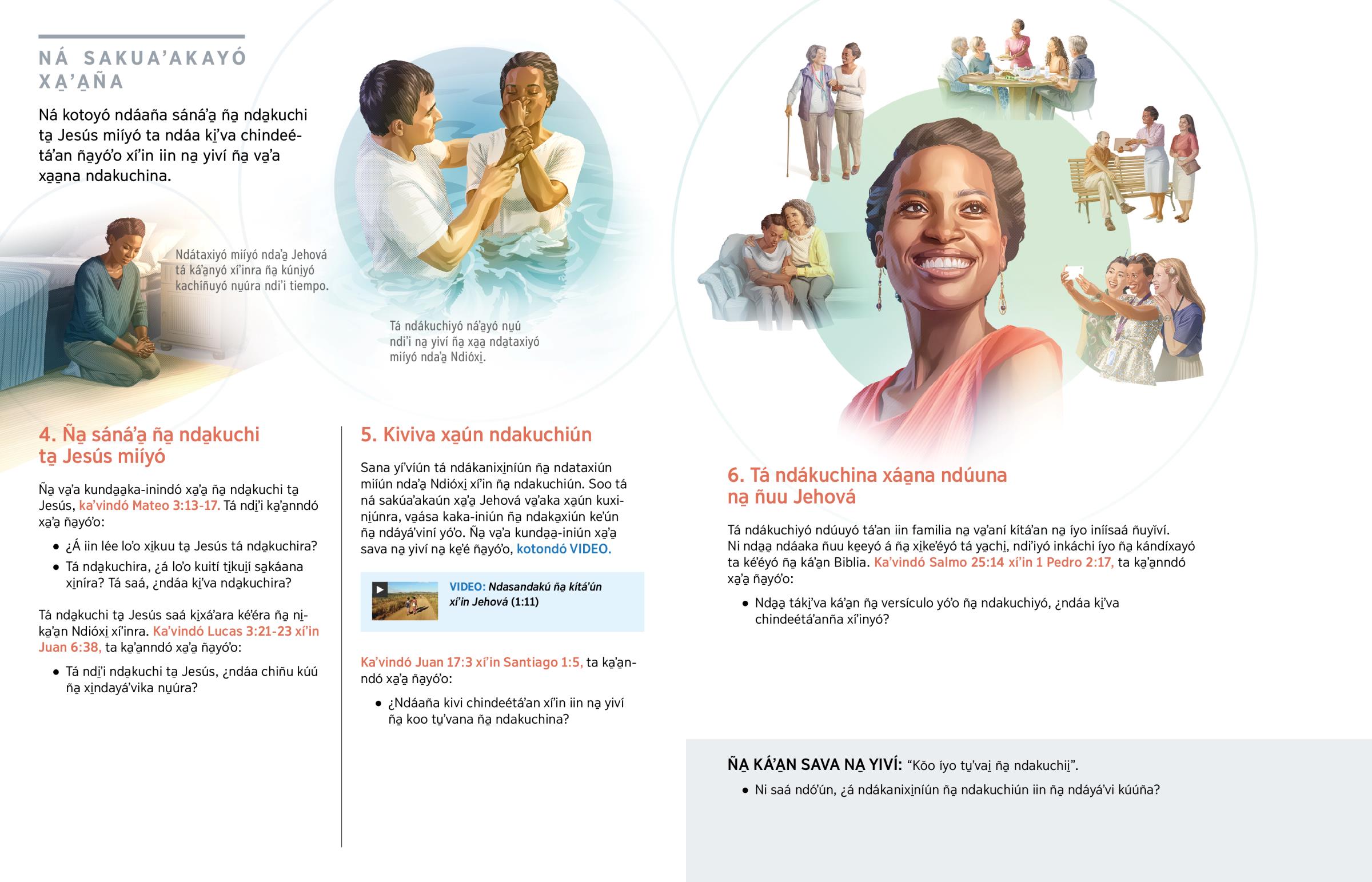 Ña̱ va̱ʼa kunda̱a̱ka-inindó xa̱ʼa̱ ña̱ nda̱kuchi ta̱ Jesús, kaʼvindó Mateo 3:13-17. Tá ndi̱ʼi ka̱ʼa̱nndó xa̱ʼa̱ ña̱yóʼo: