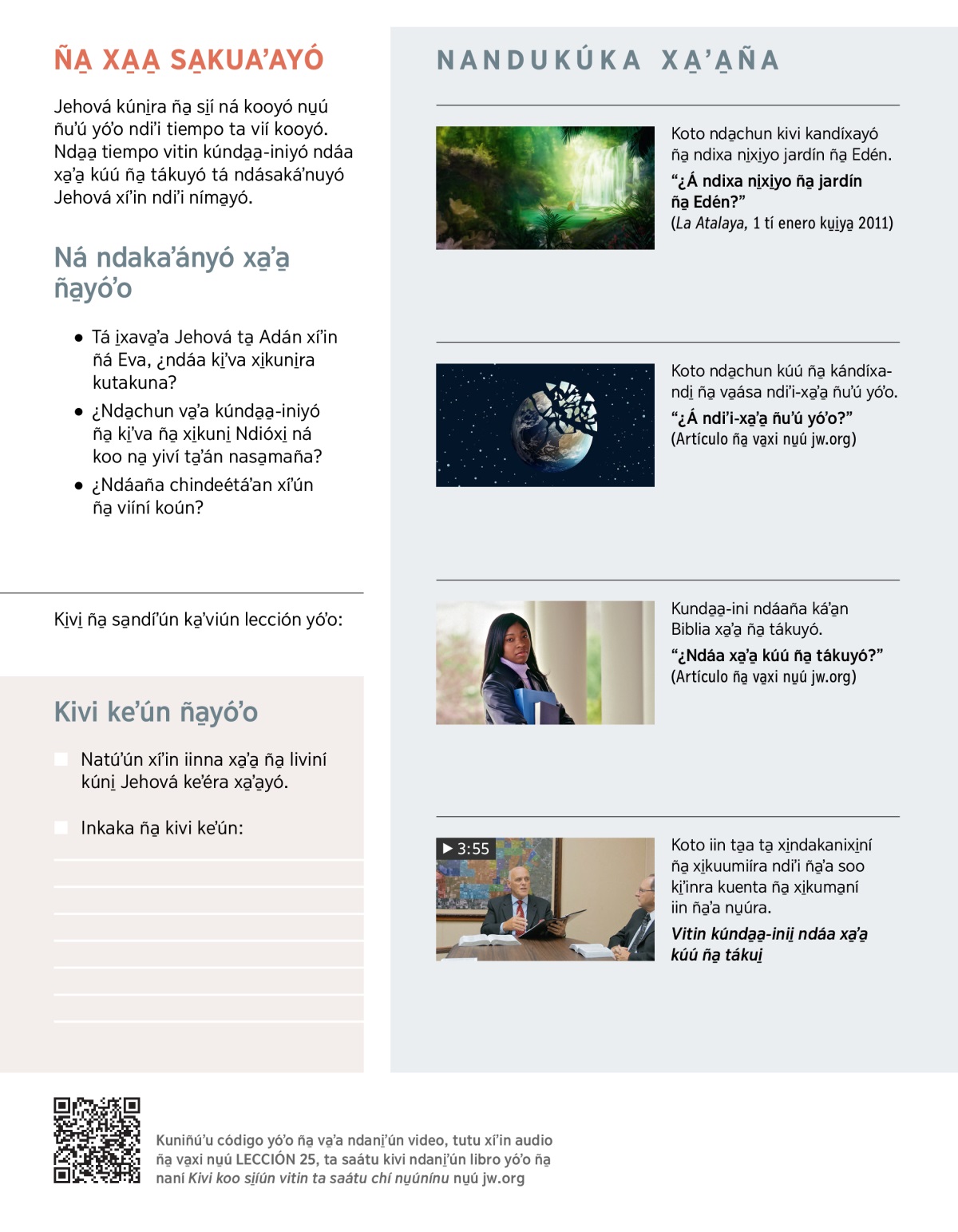 “¿Á ndiʼi-xa̱ʼa̱ ñuʼú yóʼo?” (Artículo ña̱ va̱xi nu̱ú jw.org)