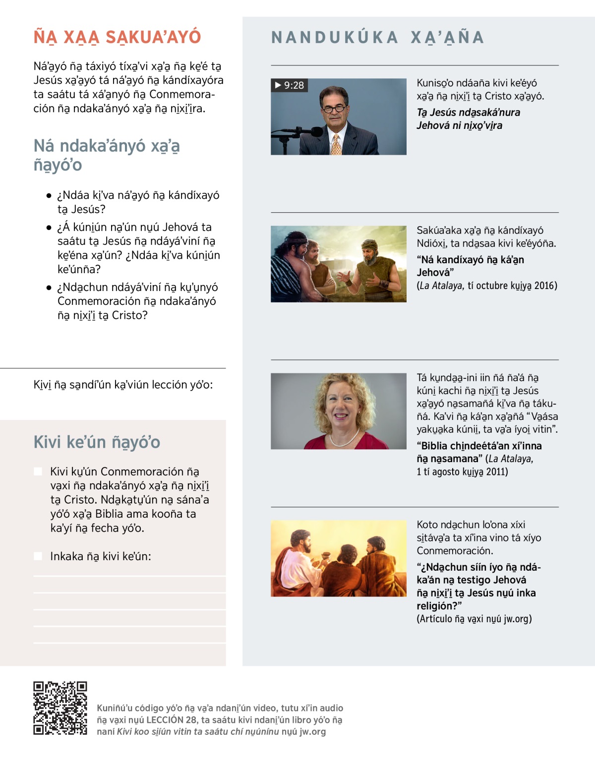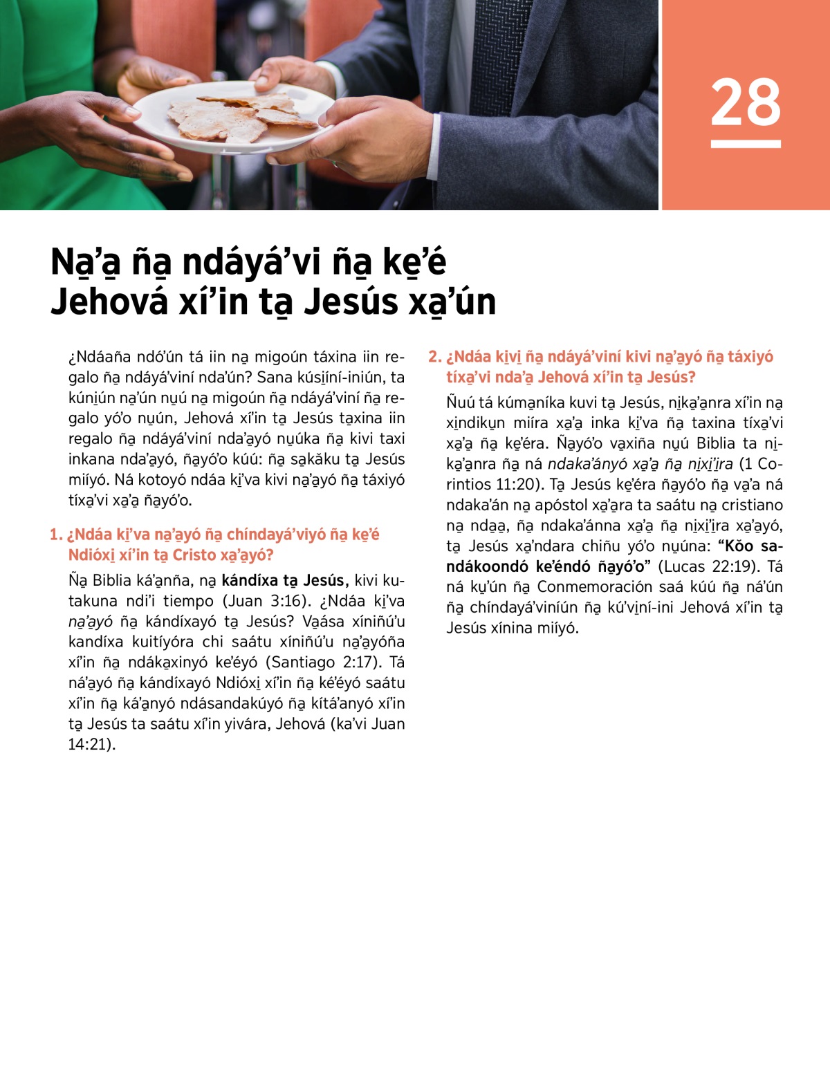 Náʼa̱yó ña̱ táxiyó tíxa̱ʼvi xa̱ʼa̱ ña̱ ke̱ʼé ta̱ Jesús xa̱ʼa̱yó tá náʼa̱yó ña̱ kándíxayóra ta saátu tá xáʼa̱nyó ña̱ Conmemoración ña̱ ndakaʼányó xa̱ʼa̱ ña̱ ni̱xi̱ʼi̱ra.