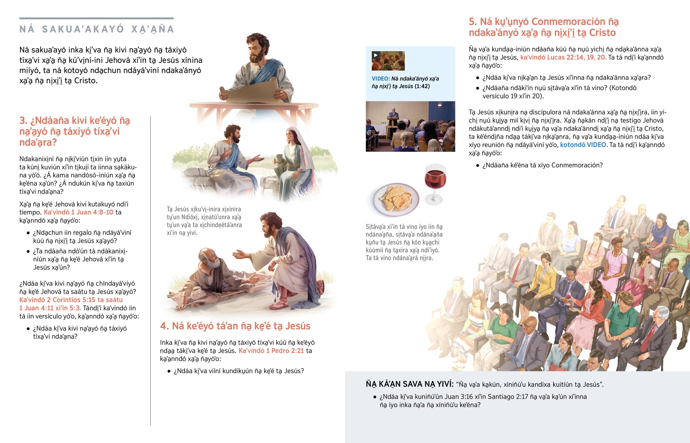 Ta̱ Jesús xi̱kuni̱ra na̱ discípulora ná ndakaʼánna xa̱ʼa̱ ña̱ ni̱xi̱ʼi̱ra, iin yichi̱ nu̱ú ku̱i̱ya̱ mií ki̱vi̱ ña̱ ni̱xi̱ʼi̱ra. Xa̱ʼa̱ ña̱kán ndi̱ʼi̱ na̱ testigo Jehová ndákutáʼanndi̱ ndiʼi ku̱i̱ya̱ ña̱ va̱ʼa ndakaʼánndi̱ xa̱ʼa̱ ña̱ ni̱xi̱ʼi̱ ta̱ Cristo, ta kéʼéndi̱ña nda̱a̱ táki̱ʼva ni̱ka̱ʼa̱nra, ña̱ va̱ʼa kunda̱a̱-iniún ndáa ki̱ʼva xíyo reunión ña̱ ndáyáʼviní yóʼo, kotondó VIDEO. Ta tá ndi̱ʼi ka̱ʼa̱nndó xa̱ʼa̱ ña̱yóʼo: