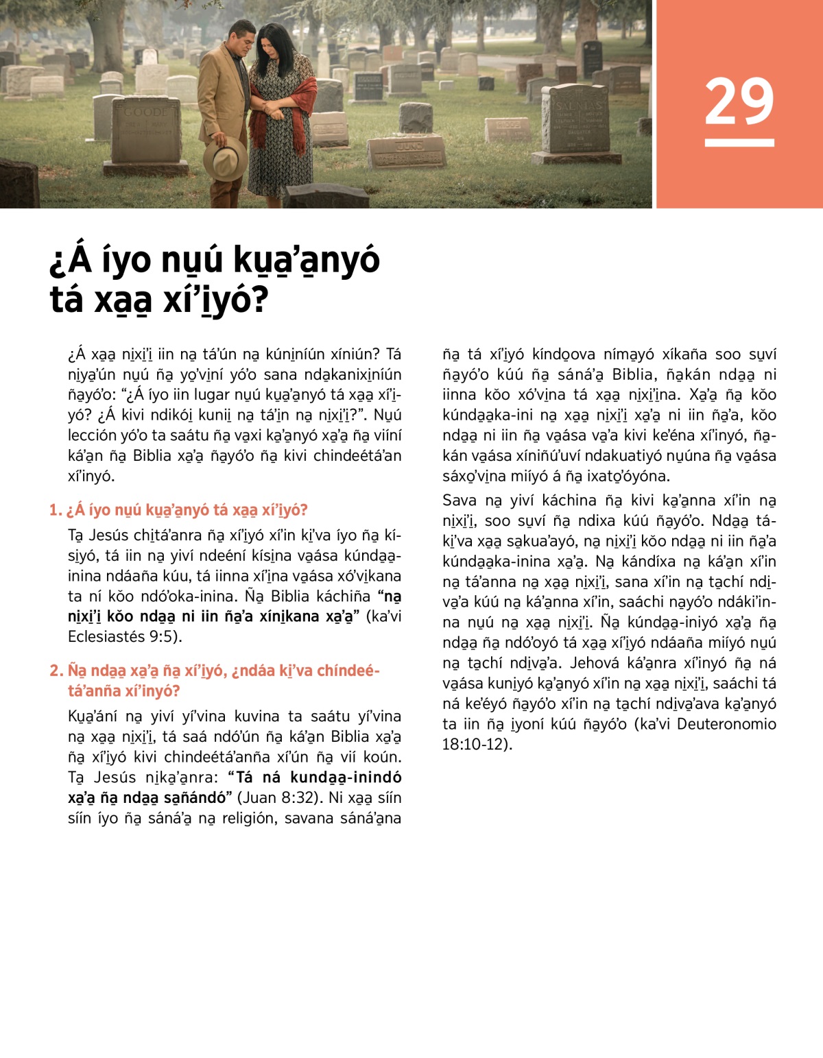 Ta̱ Jesús chi̱táʼanra ña̱ xíʼi̱yó xíʼin ki̱ʼva íyo ña̱ kísi̱yó, tá iin na̱ yiví ndeéní kísi̱na va̱ása kúnda̱a̱-inina ndáaña kúu, tá iinna xíʼi̱na va̱ása xóʼvi̱kana ta ní kǒo ndóʼoka-inina. Ña̱ Biblia káchiña “na̱ ni̱xi̱ʼi̱ kǒo nda̱a̱ ni iin ña̱ʼa xíni̱kana xa̱ʼa̱” (kaʼvi Eclesiastés 9:5).