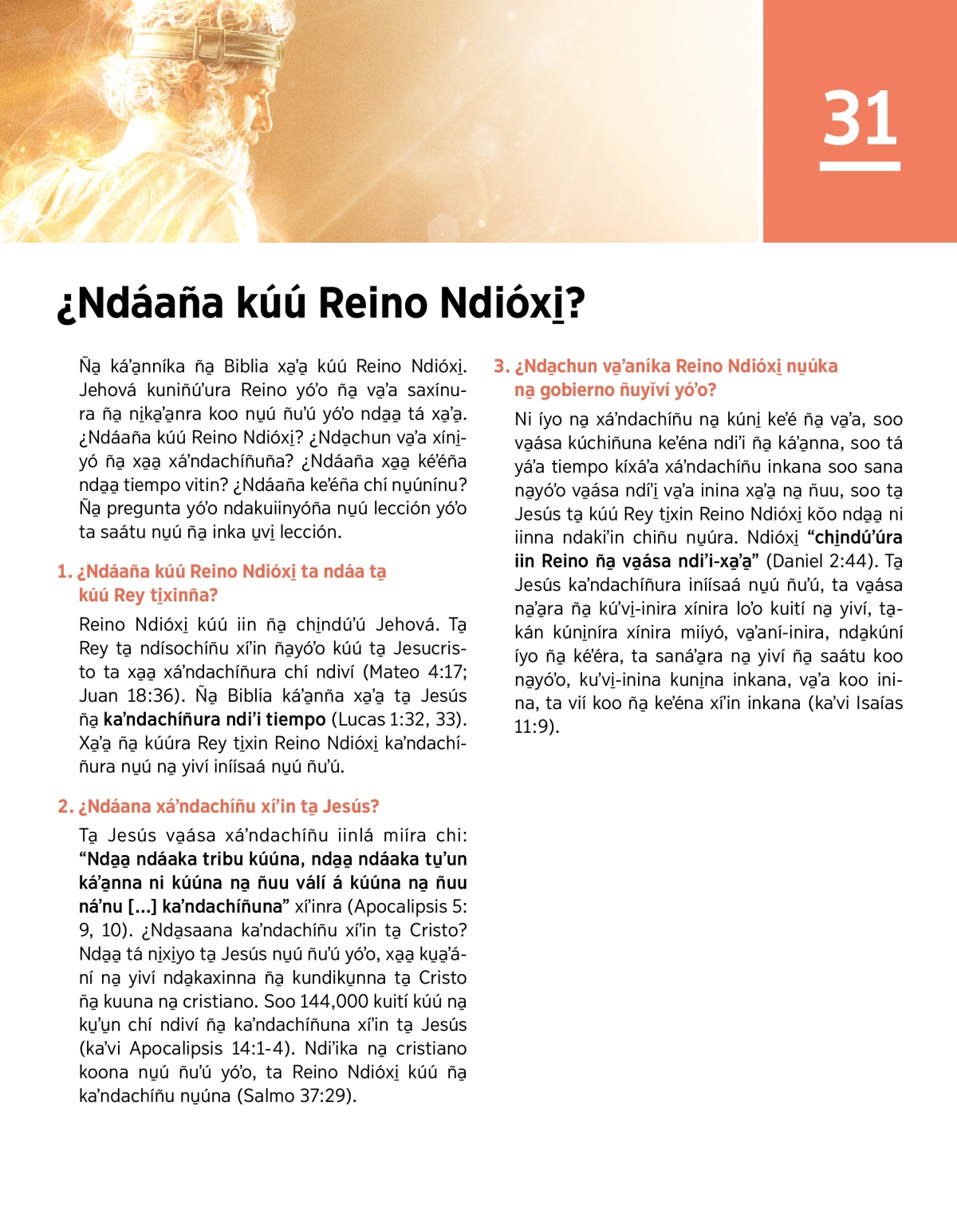 ÑA̱ KÁʼA̱N SAVA NA̱ YIVÍ: “¿Ndáaña kúú Reino Ndióxi̱?”.