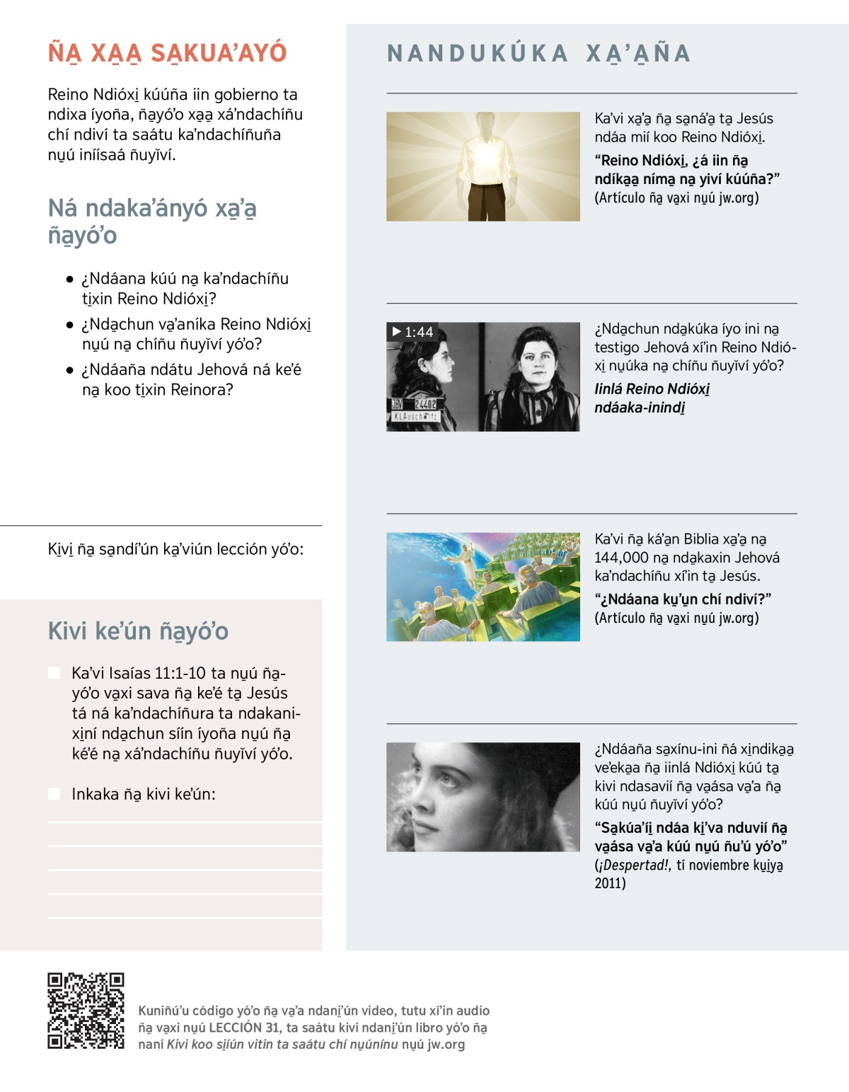 “Reino Ndióxi̱, ¿á iin ña̱ ndíka̱a̱ níma̱ na̱ yiví kúúña?” (Artículo ña̱ va̱xi nu̱ú jw.org)