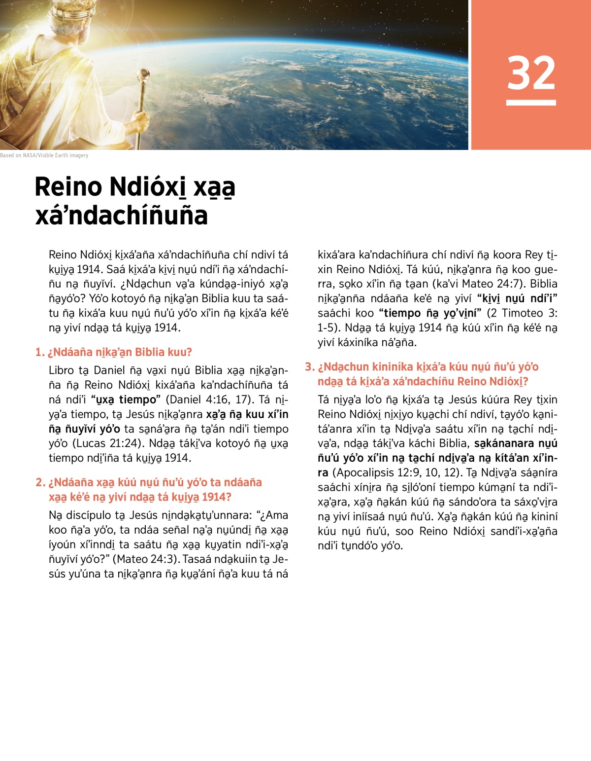 Lección 32. Ta̱ Jesucristo kúúra Rey chí ndiví ta níʼira iin cetro ta xáʼndachíñura nu̱ú iníísaá ñuyǐví.