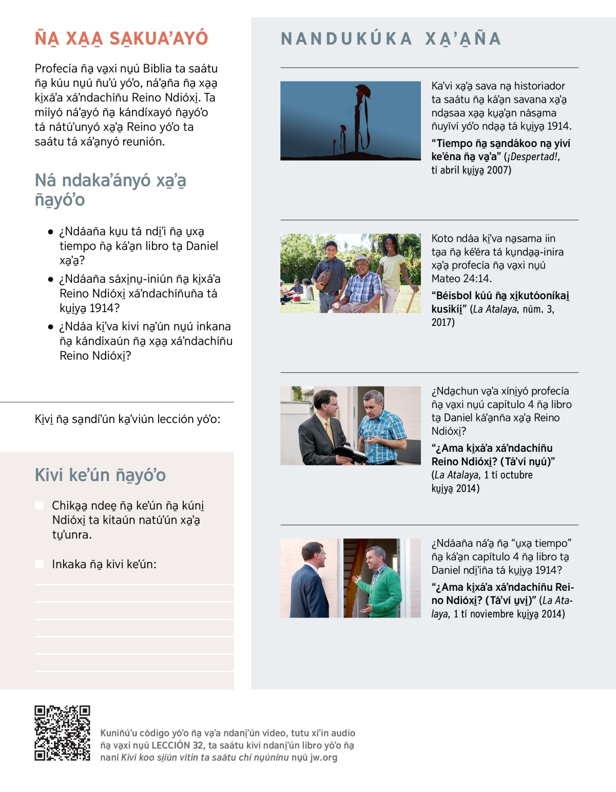 • Ña̱ káʼa̱n profecía yóʼo, ¿ndáaña xa̱a̱ xítoún xínu ta ndáaña xa̱a̱ xíniso̱ʼún káʼa̱nna xa̱ʼa̱?