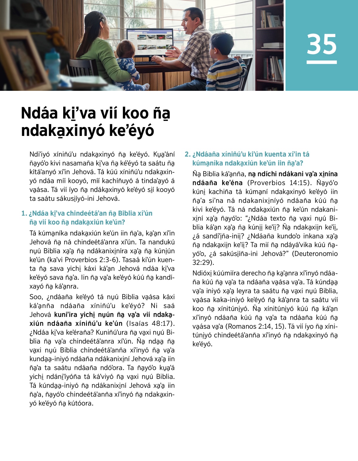 Ná kotoyó ndáa ki̱ʼva chíndeétáʼan ña̱ va̱xi nu̱ú Biblia xíʼinyó ta saátu ña̱ xínitúni̱yó tá ndáka̱xinyó keʼéyó iin ña̱ʼa.