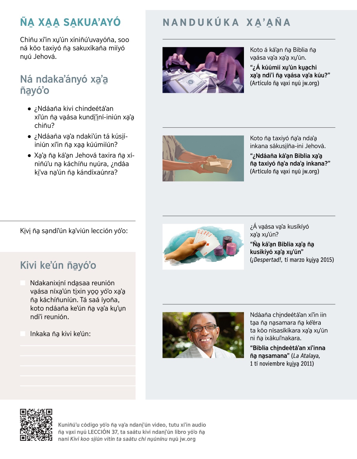 “Ña̱ káʼa̱n Biblia xa̱ʼa̱ ña̱ kusíkíyó xa̱ʼa̱ xu̱ʼún” (¡Despertad!, tí marzo ku̱i̱ya̱ 2015)