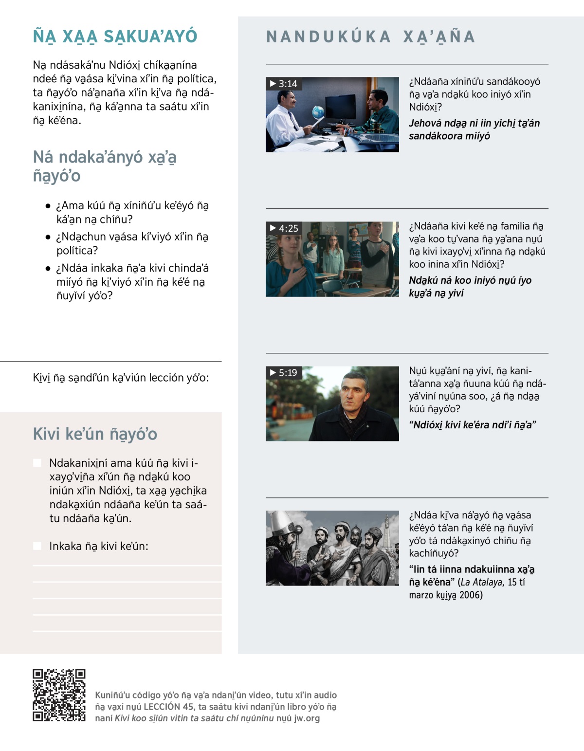 ¿Ndáa inkaka ña̱ʼa kivi chindaʼá miíyó ña ki̱ʼviyó xíʼin ña̱ política? Kotondó VIDEO ta ka̱ʼa̱nndó xa̱ʼa̱ ña̱yóʼo: