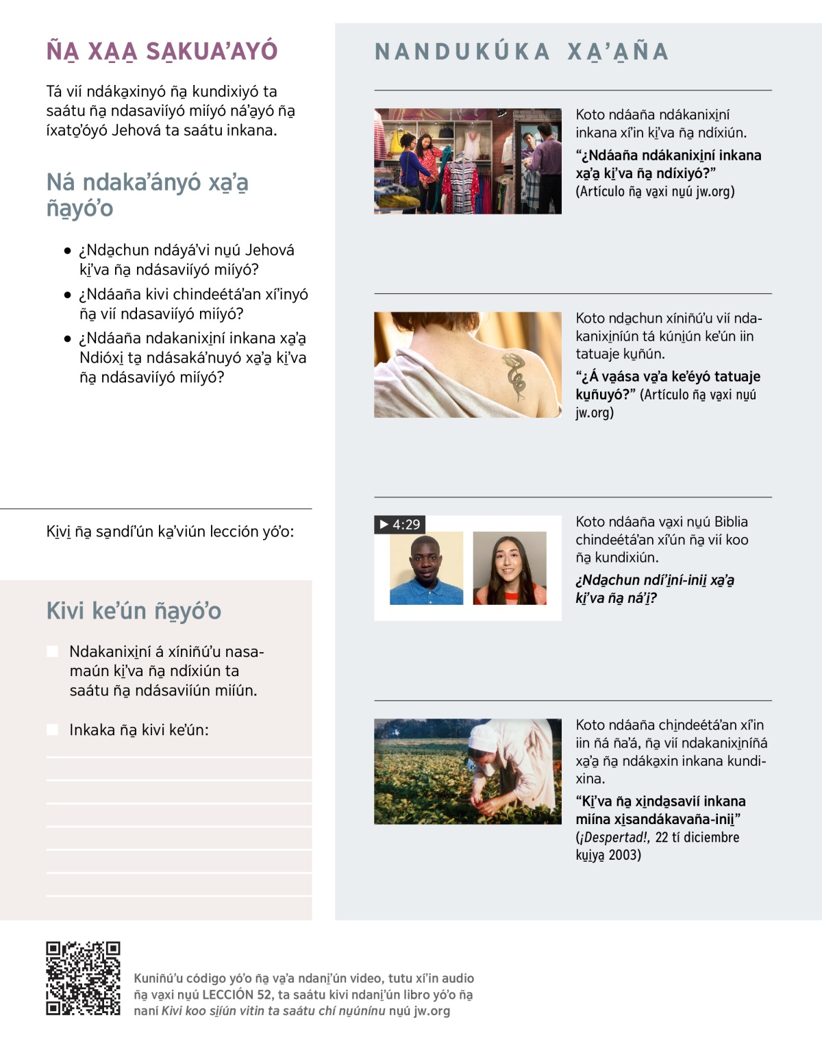 Tá vií ndáka̱xinyó ña̱ kundixiyó ta saátu ña̱ ndasaviíyó miíyó náʼa̱yó ña̱ íxato̱ʼóyó Jehová ta saátu inkana.