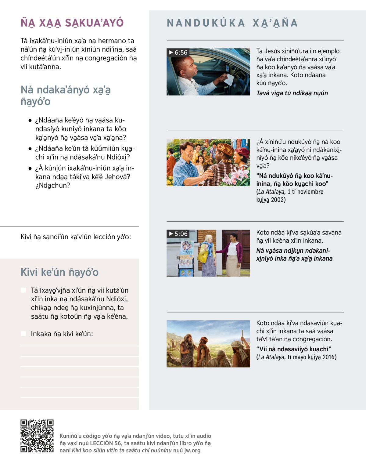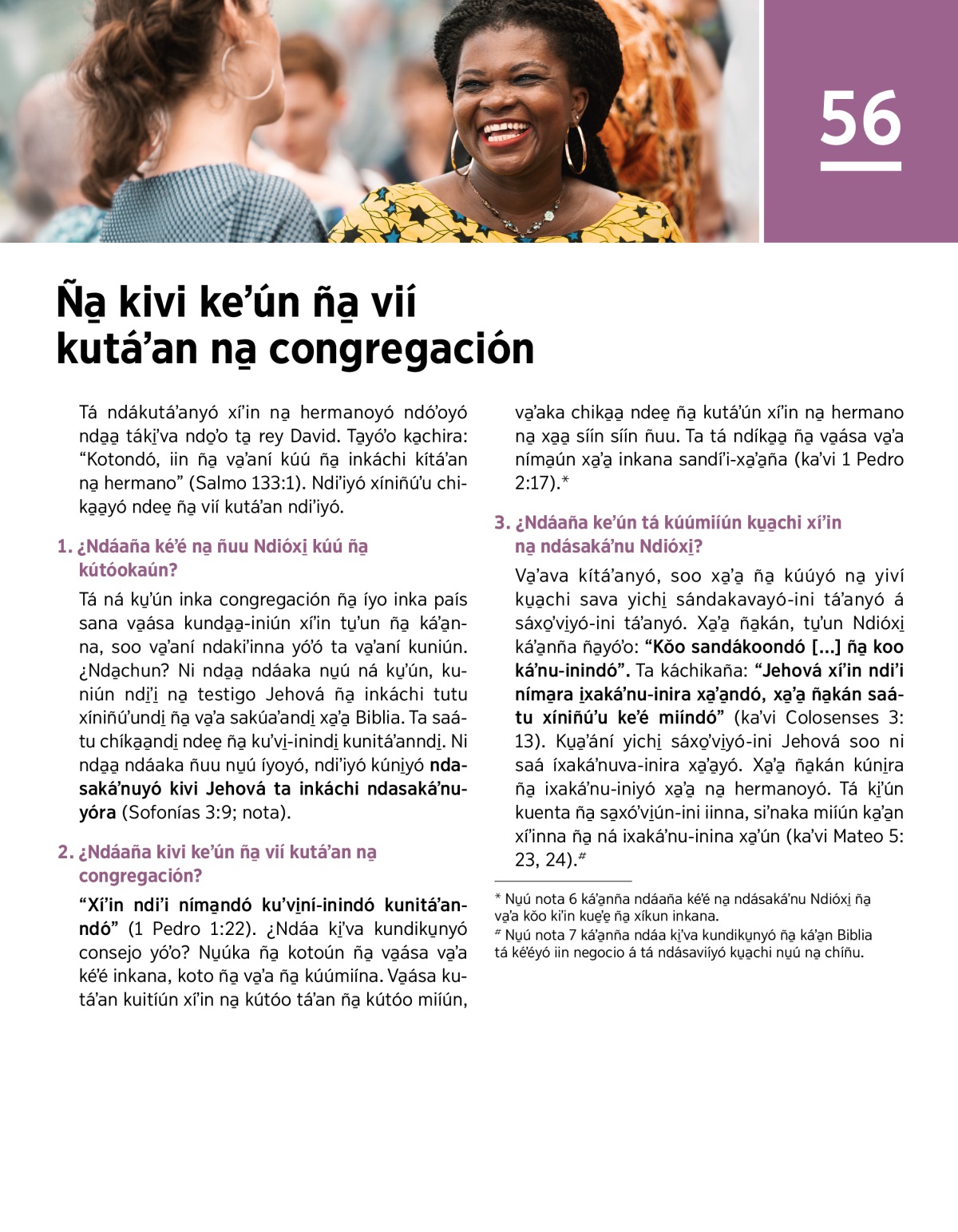 Koto ndáa ki̱ʼva ndasaviún ku̱a̱chi xíʼin inkana ta saá va̱ása taʼví táʼan na̱ congregación.