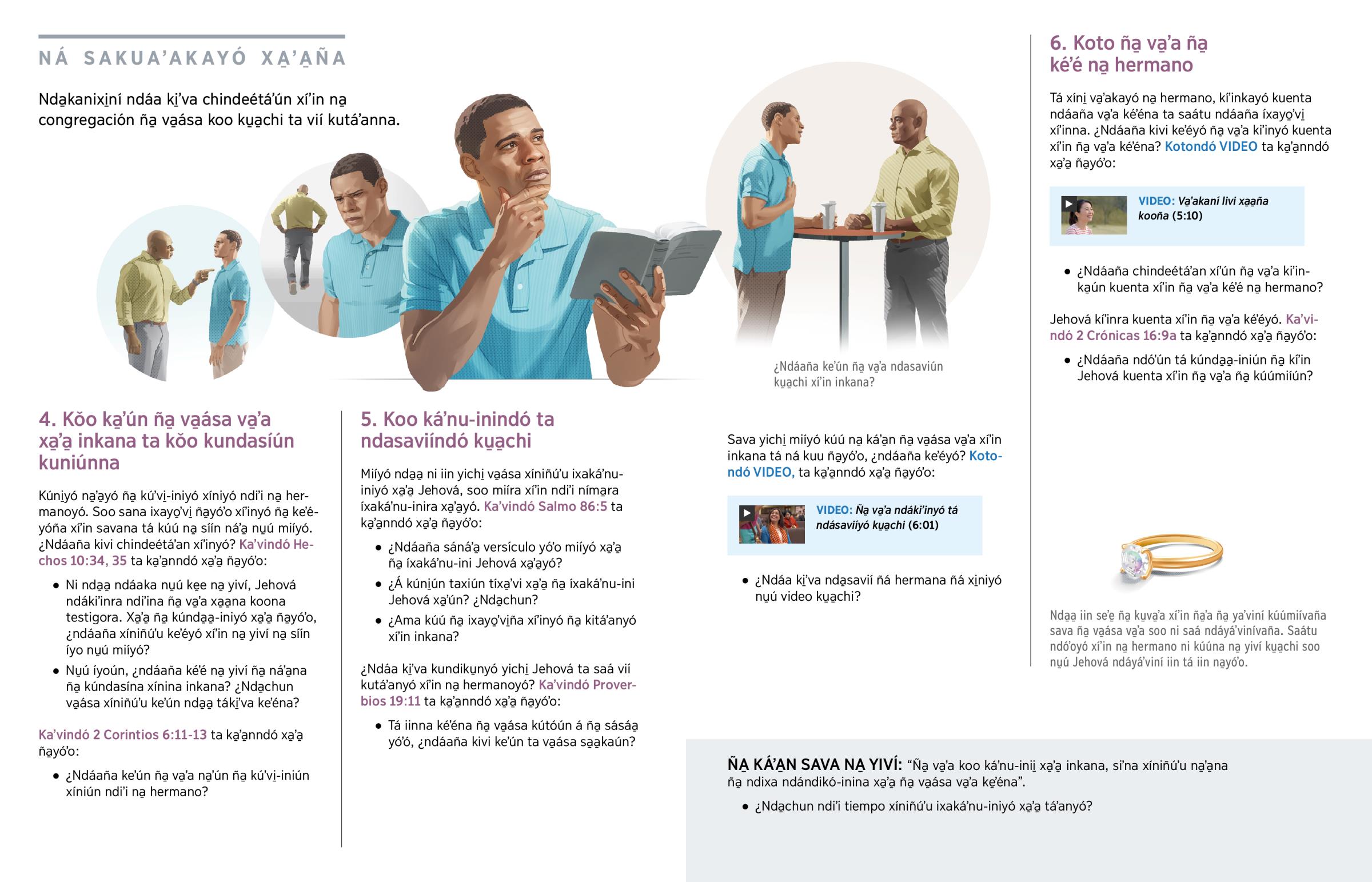 Nda̱a̱ iin seʼe̱ ña̱ ku̱va̱ʼa xíʼin ña̱ʼa ña̱ yaʼviní kúúmiívaña sava ña̱ va̱ása va̱ʼa soo ni saá ndáyáʼvinívaña. Saátu ndóʼoyó xíʼin na̱ hermano ni kúúna na̱ yiví ku̱a̱chi soo nu̱ú Jehová ndáyáʼviní iin tá iin na̱yóʼo.