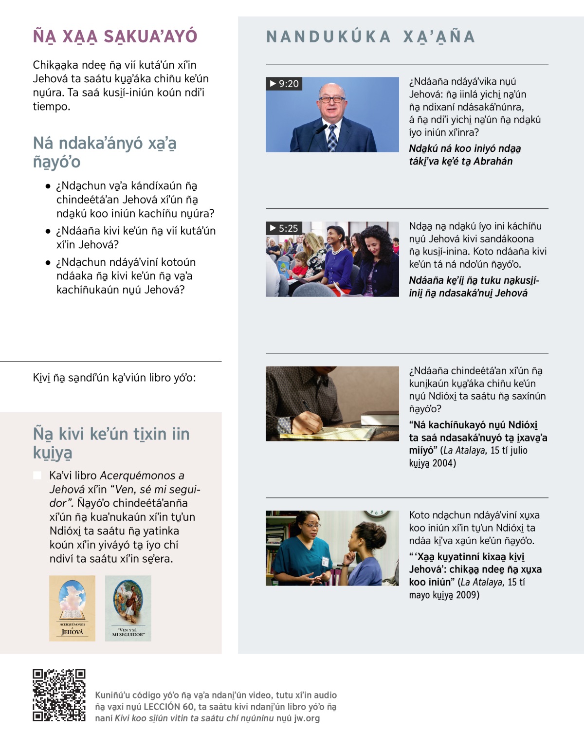 Tá ná kuni̱ún kachíñukaún nu̱ú Jehová kuaʼnukaún xíʼin tu̱ʼunra. Kotondó VIDEO ta ka̱ʼa̱nndó xa̱ʼa̱ ña̱yóʼo: