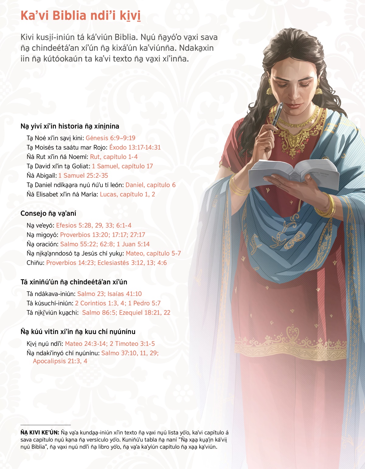 Kivi kusi̱í-iniún tá káʼviún Biblia. Nu̱ú ña̱yóʼo va̱xi sava ña̱ chindeétáʼan xíʼún ña̱ kixáʼún kaʼviúnña. Ndaka̱xin iin ña̱ kútóokaún ta kaʼvi texto ña̱ va̱xi xíʼinña.