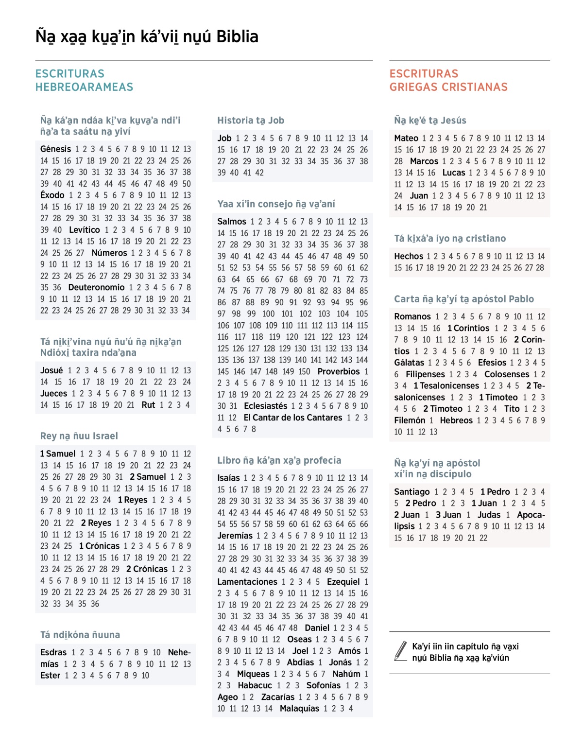 Kaʼyí iin iin capítulo ña̱ va̱xi nu̱ú Biblia ña̱ xa̱a̱ ka̱ʼviún