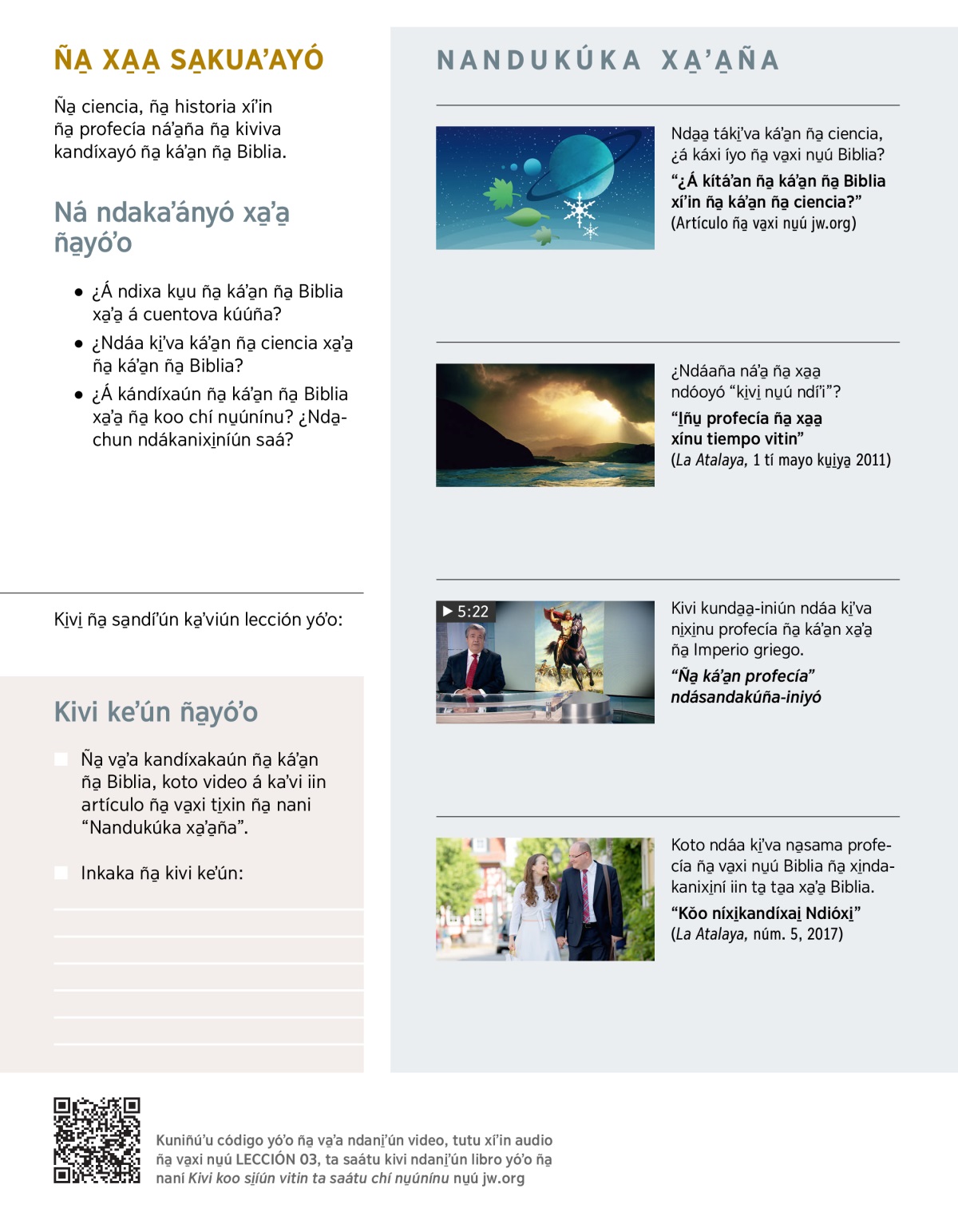 3. ¿Nda̱chun va̱ʼa kándíxayó ña̱ káʼa̱n ña̱ Biblia xa̱ʼa̱ ña̱ koo chí nu̱únínu?