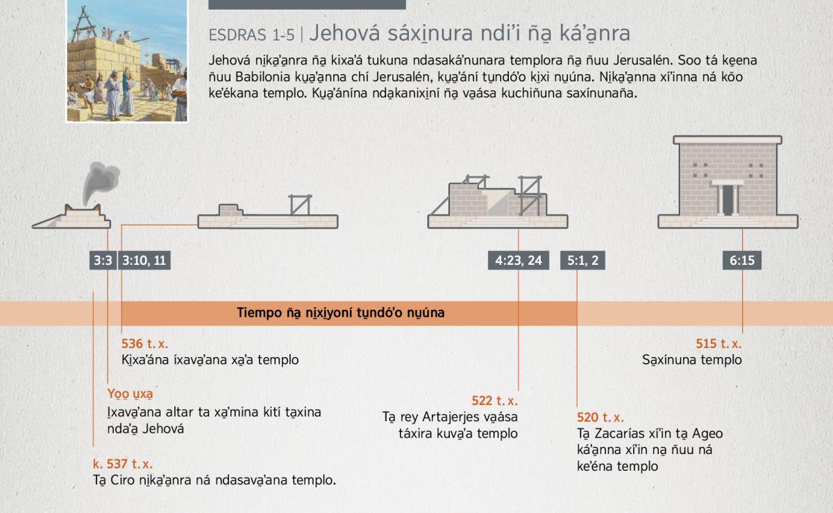 Jehová ni̱ka̱ʼa̱nra ña̱ kixaʼá tukuna ndasakáʼnunara templora ña̱ ñuu Jerusalén. Soo tá ke̱ena ñuu Babilonia ku̱a̱ʼa̱nna chí Jerusalén, ku̱a̱ʼání tu̱ndóʼo ki̱xi nu̱úna. Ni̱ka̱ʼa̱nna xíʼinna ná kǒo keʼékana templo. Ku̱a̱ʼánína nda̱kanixi̱ní ña̱ va̱ása kuchiñuna saxínunaña.